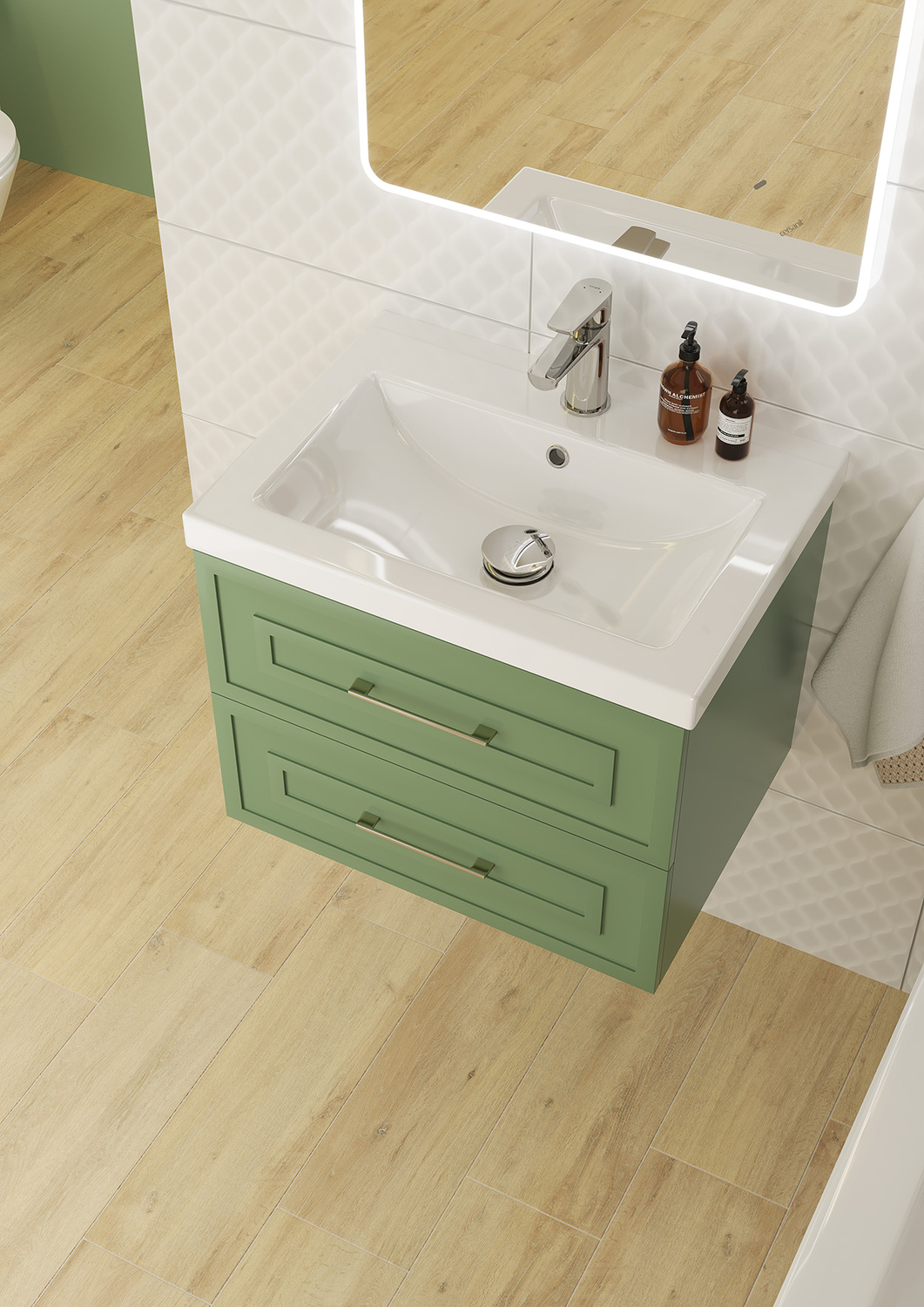 Тумба Classic в зелёном цвете — это изысканное воплощение классических традиций в современном дизайне. Минималистичная фрезеровка подчеркивает элегантность модели, а матовая, приятная на ощупь поверхность, словно шелк, дарит умиротворение и гармонию. Приятный зеленый оттенок напоминает о природе, траве и листве, вызывая ассоциации с весенним пробуждением и свежестью. Он идеально сочетается с другими природными цветами, такими как бежевый, серый или коричневый, а также с деревянными элементами.