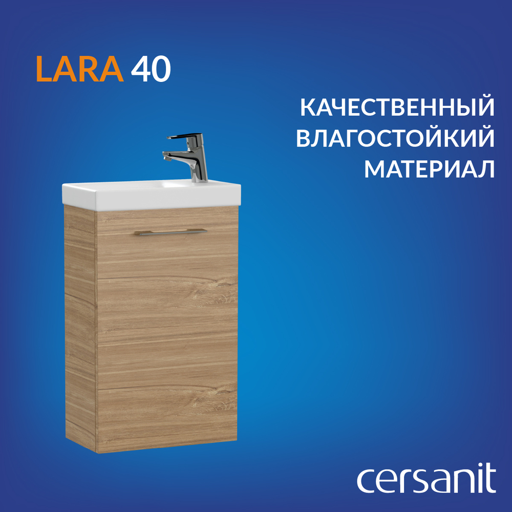 Современный, элегантный дизайн мебели LARA отлично впишется в современные ванные комнаты в различных стилях. Цвет "орех" и минималистичная форма оставляют место для творческой свободы. Цвет "орех" мебели идеально подойдёт как для яркого, так и для спокойного скандинавского интерьера. К тумбе рекомендуем раковины СOMO40 или MODUO40.
