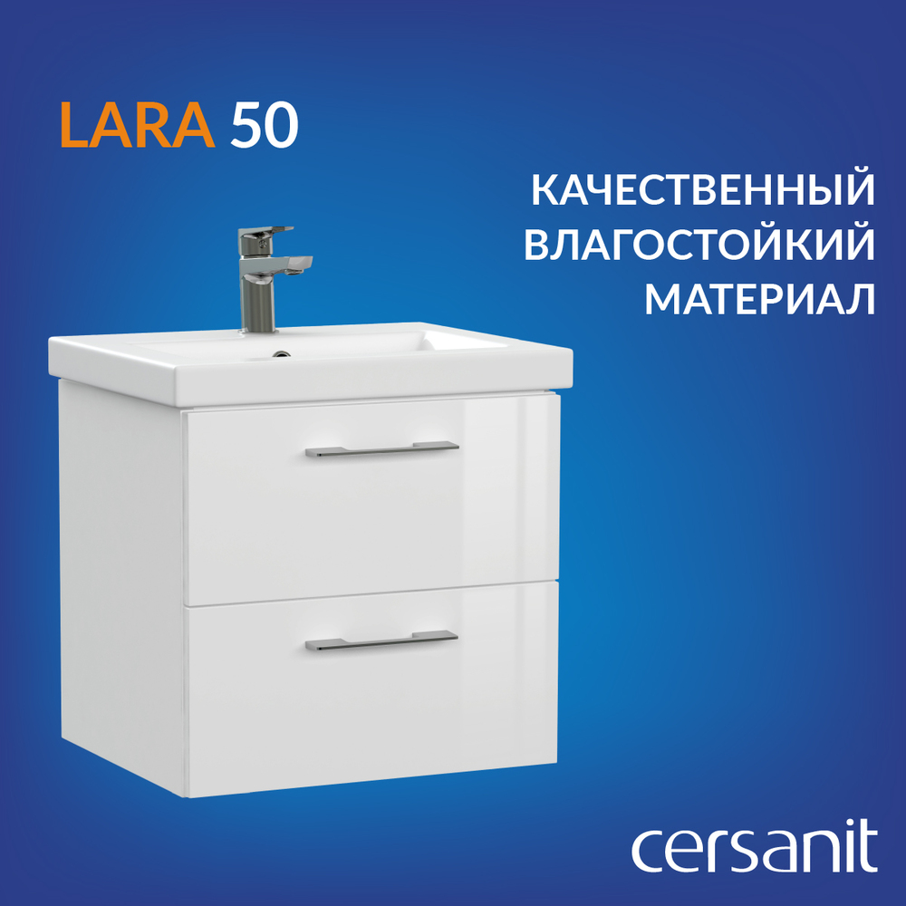 Современный, элегантный дизайн мебели LARA отлично впишется в современные ванные комнаты в различных стилях. Белый цвет и минималистичная форма оставляют место для творческой свободы. Белый цвет мебели идеально подойдёт как для яркого, так и для спокойного скандинавского интерьера.