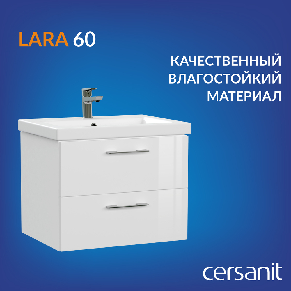 Современный, элегантный дизайн мебели LARA отлично впишется в современные ванные комнаты в различных стилях. Белый цвет и минималистичная форма оставляют место для творческой свободы. Белый цвет мебели идеально подойдёт как для яркого, так и для спокойного скандинавского интерьера.