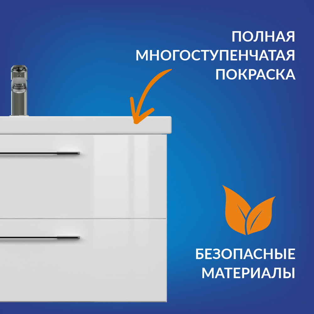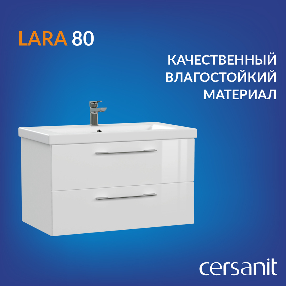 Современный, элегантный дизайн мебели LARA отлично впишется в современные ванные комнаты в различных стилях. Белый цвет и минималистичная форма оставляют место для творческой свободы. Белый цвет мебели идеально подойдёт как для яркого, так и для спокойного скандинавского интерьера.