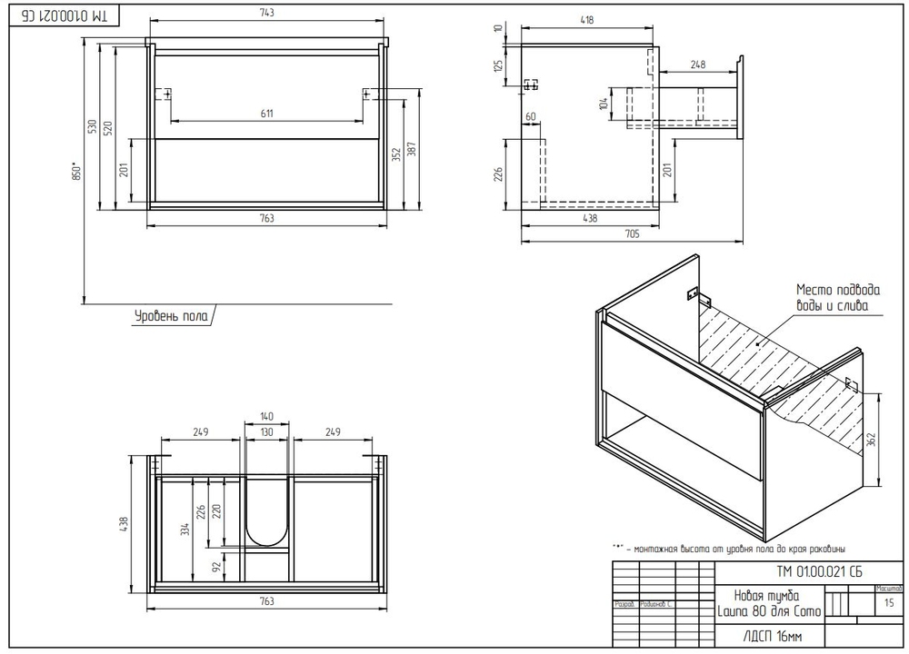 ВНИМАНИЕ: В КОМПЛЕКТАЦИЮ ДАННОГО АРТИКУЛА РАКОВИНА НЕ ВХОДИТ!