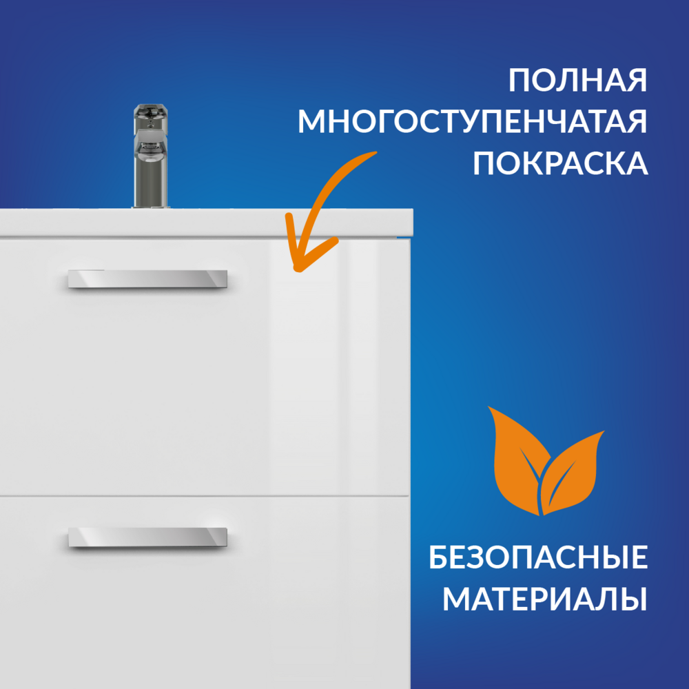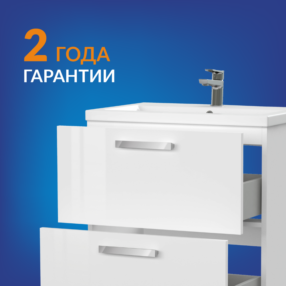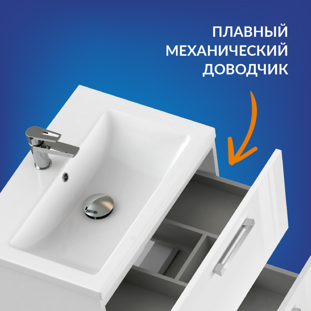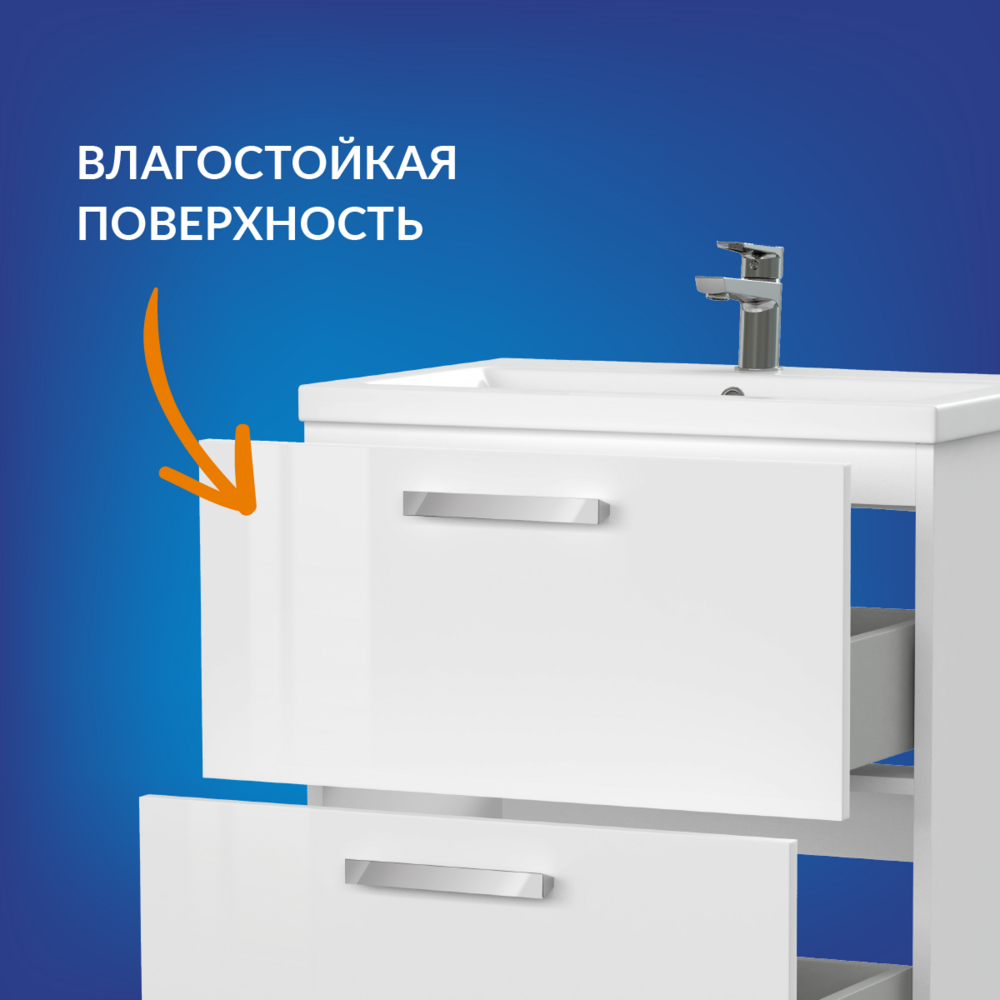 Тумба под раковину MELAR выполнена в нетеряющем актуальности белом цвете. Гладкие глянцевые фасады ящиков дополены хромированными ручками четкой геометричесокй формы. Скрытые направляющие ящиков снабжены доводчиками, что позволяет закрывать ящик мягко и бесшумно. Тумбу можно как подвешивать на стенку, так и устанавливать на ножки, что делает ее универсальным и функциональным решением для любой ванной комнаты.