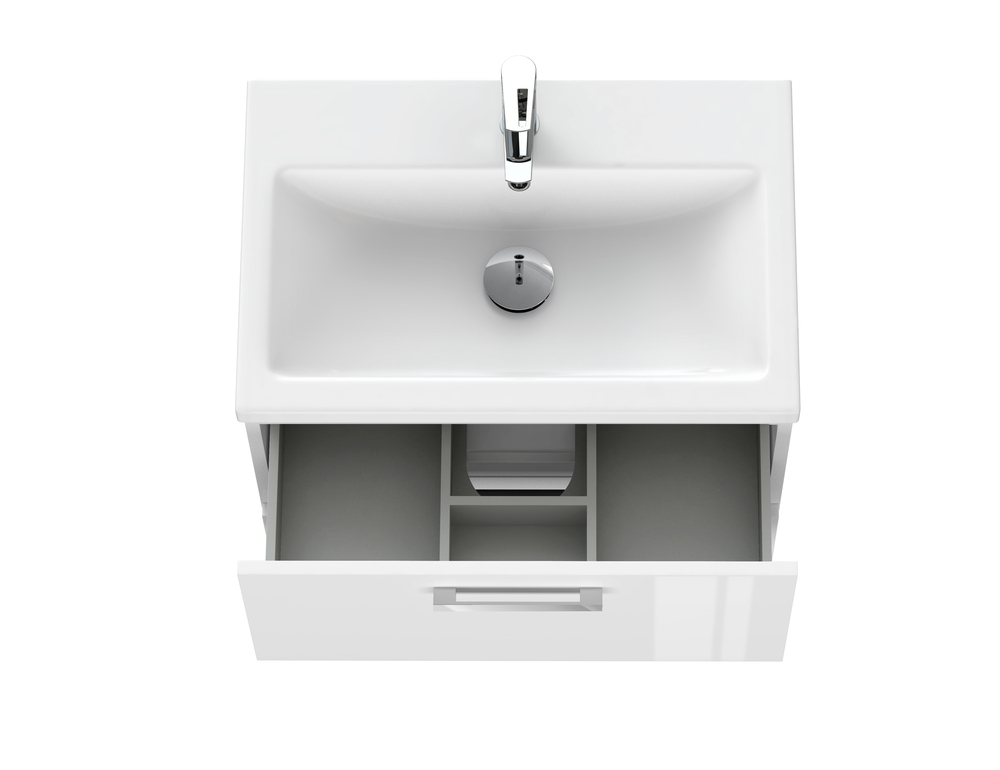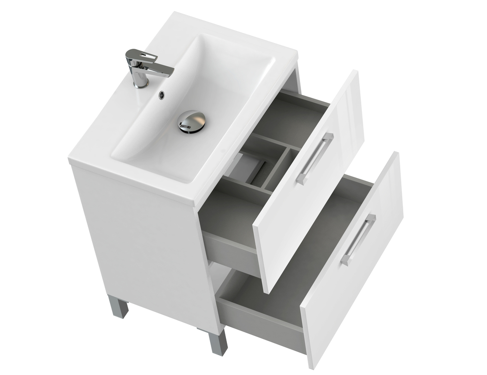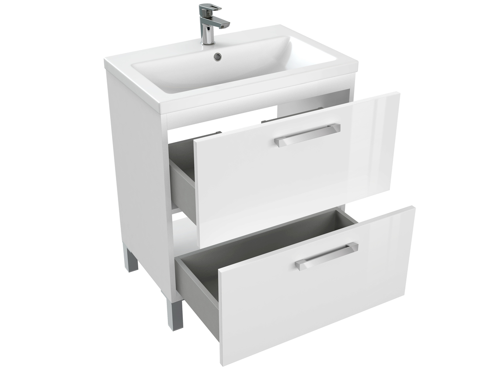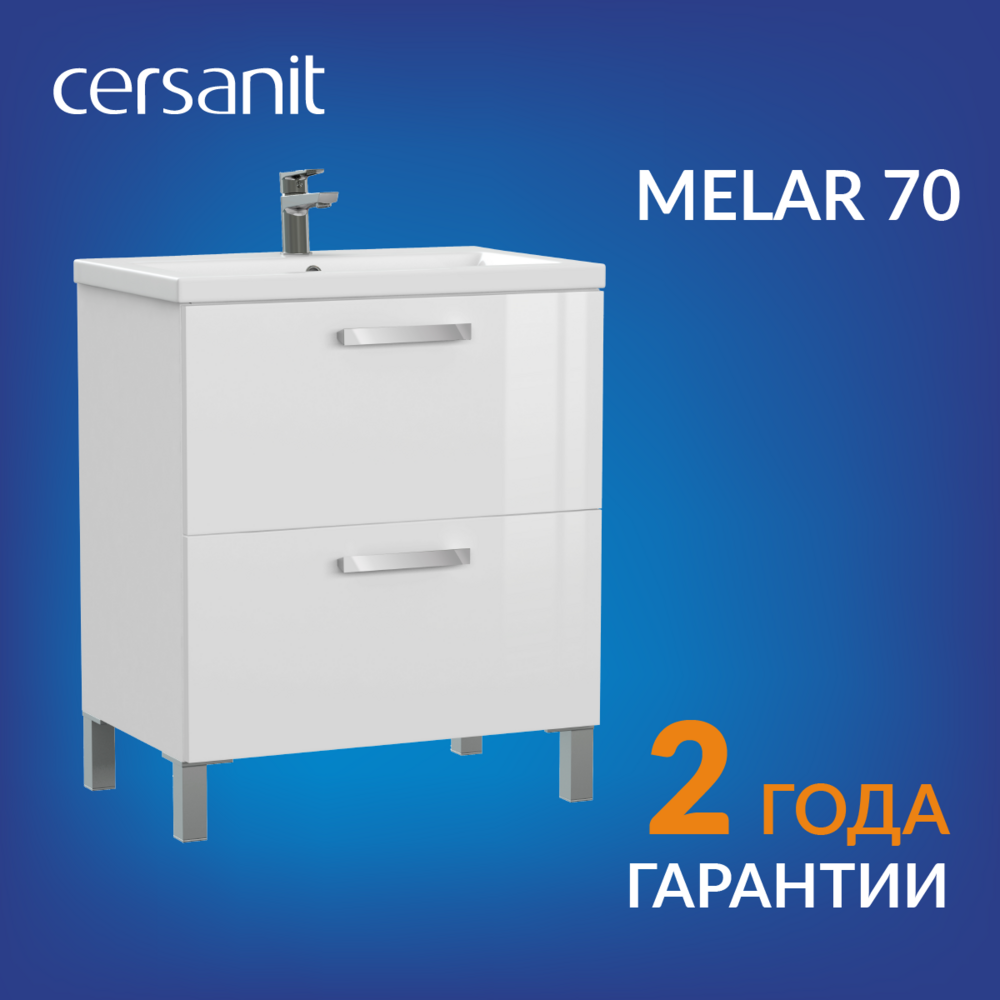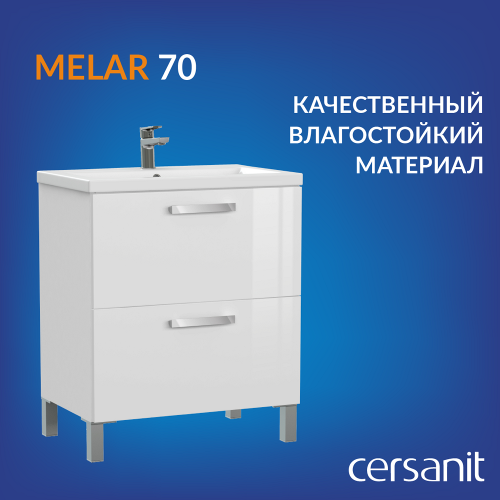 Тумба под раковину MELAR выполнена в нетеряющем актуальности белом цвете. Гладкие глянцевые фасады ящиков дополены хромированными ручками четкой геометричесокй формы. Скрытые направляющие ящиков снабжены доводчиками, что позволяет закрывать ящик мягко и бесшумно. Тумбу можно как подвешивать на стенку, так и устанавливать на ножки, что делает ее универсальным и функциональным решением для любой ванной комнаты.