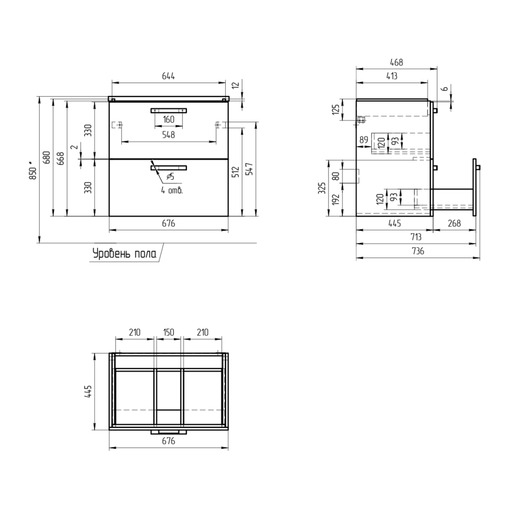 тумба, комплект креплений, инструкция, гарантийный талон (ножки приобретаются отдельно)