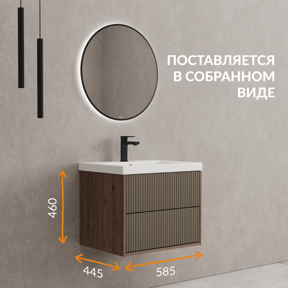 Тумба шириной 60 см подходит для наполнения небольших санузлов. Для более вместительных ванных комнат вы можете скомпоновать тумбу с пеналом Classic Ribble или выбрать тумбу размером 80 см.