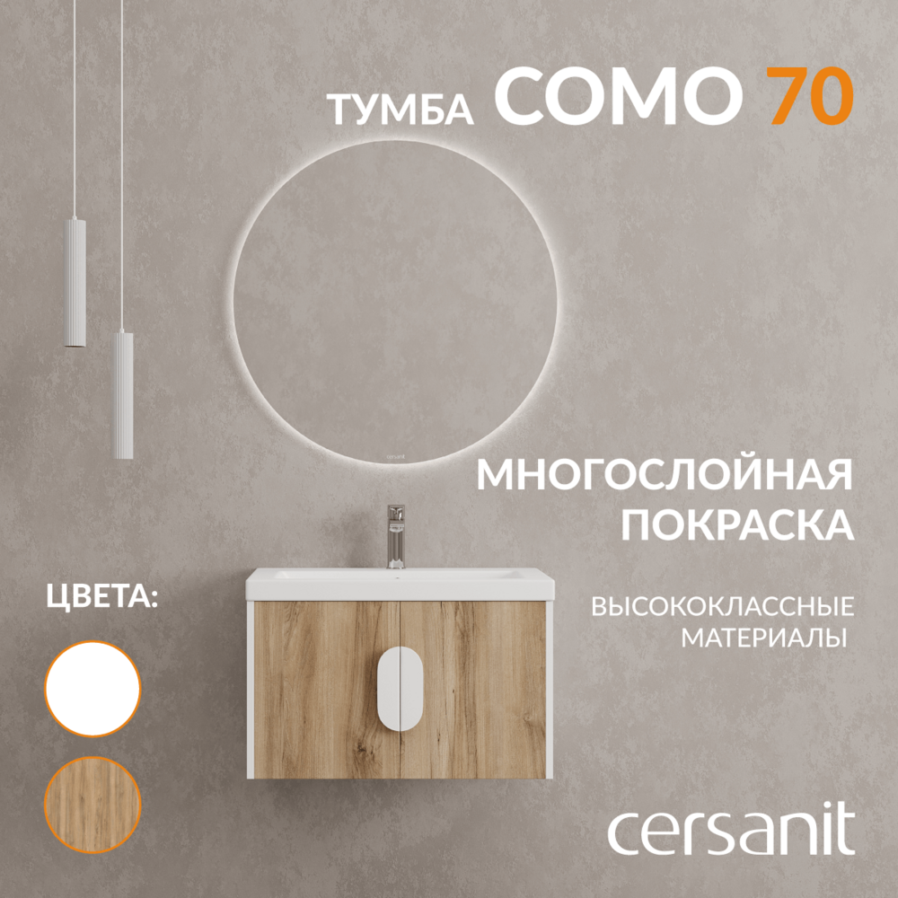 Тумбы для ванной комнаты Como прекрасны в своей гармоничной красоте. Дизайнеры Cersanit нашли баланс между чистотой форм и выразительностью характера этой мебели. Он достигается благодаря необычному сочетанию прямоугольной формы фасада и овала ручек. Благодаря их уникальной конструкции и удобному расположению в руке дверцы тумбы открываются ещё проще и комфортнее. Так коллекция обретает особое звучание, где все акценты сосредоточены на спокойствии и аккуратности.