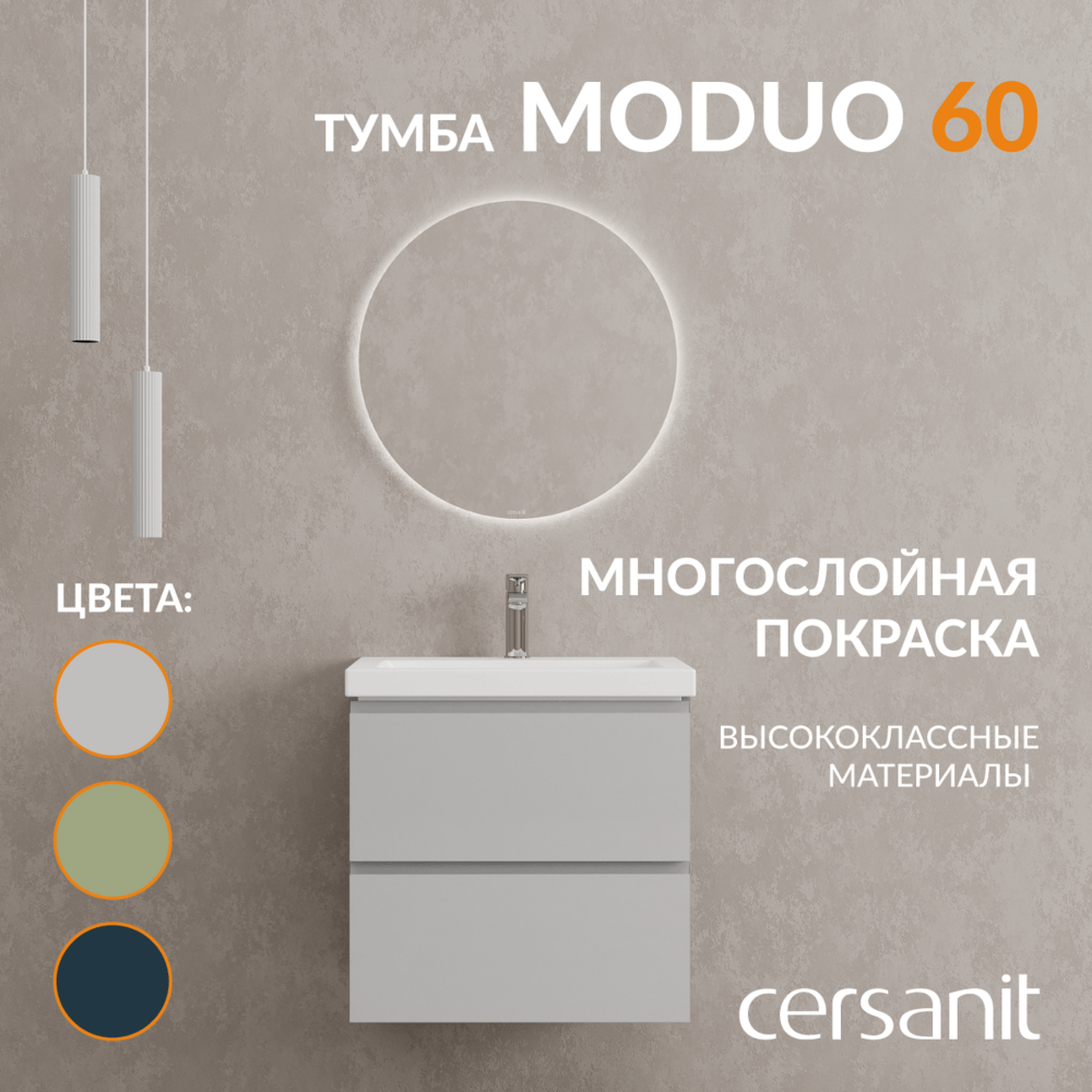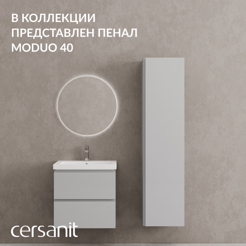 Тумба Moduo в цвете «серый туман» — это воплощение сдержанной элегантности и современного дизайна. Матовая текстура, мягко рассеивая свет, дарит поверхности благородную глубину оттенка. Трендовый цвет, как утренний туман над водой, спокойный, естественный и гармоничный. Все эти качества он дарит ванной комнате, превращая ее в помещение для расслабления.