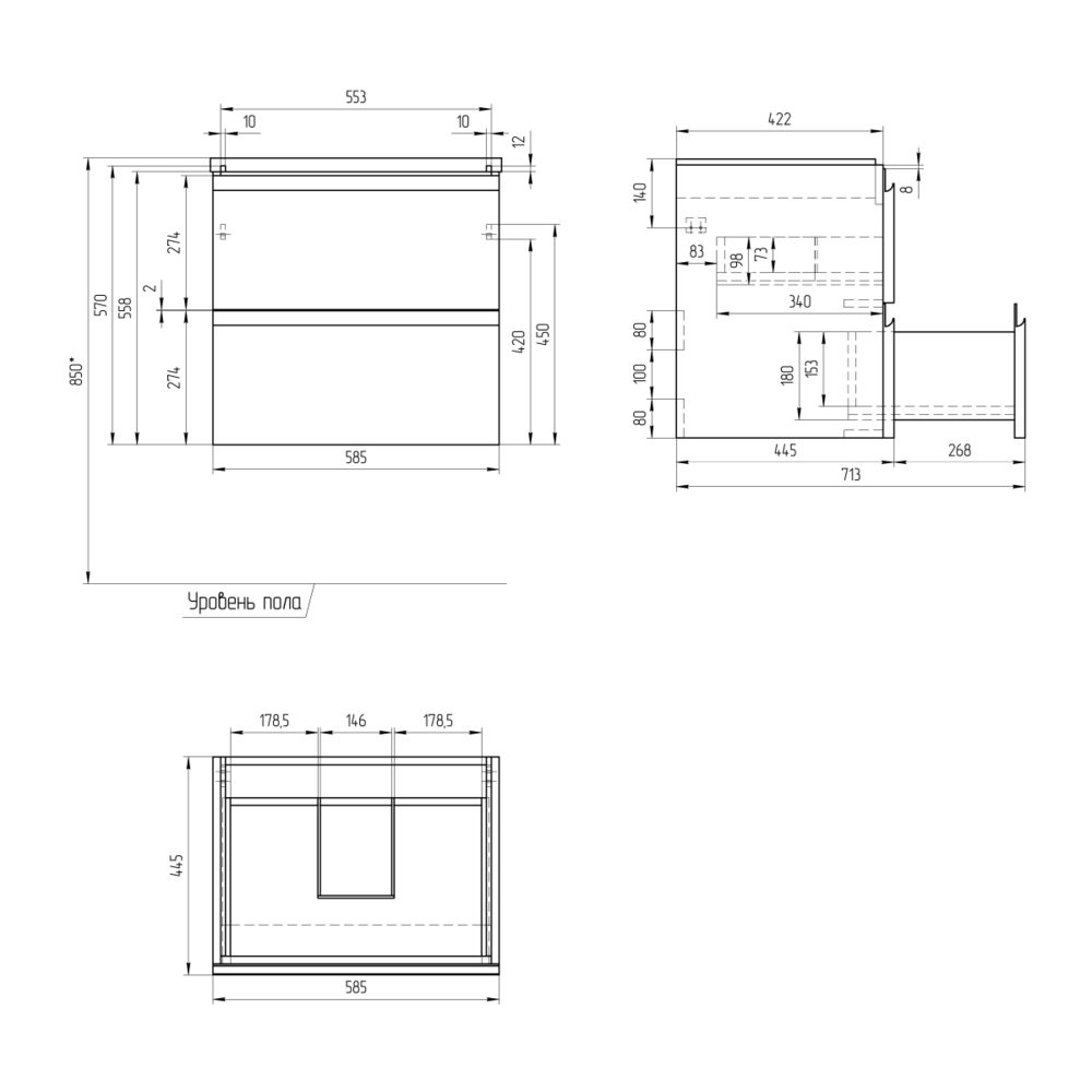 Тумба под раковину подвесная MODUO 60 для COMO 60 серый туман