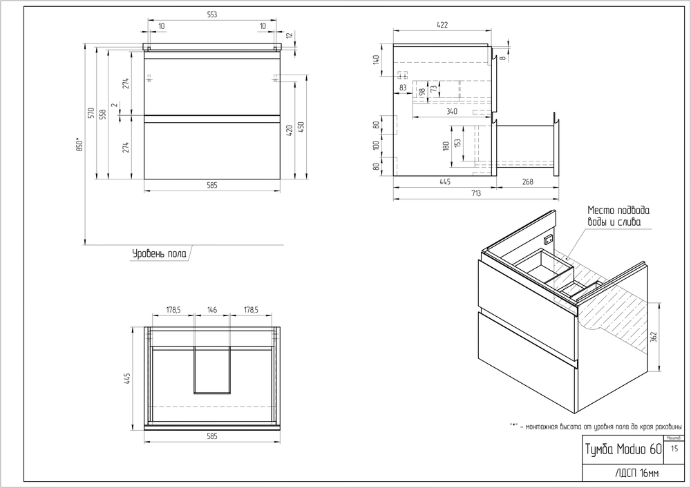 Тумба под раковину подвесная MODUO 60 для COMO 60 темно-серый