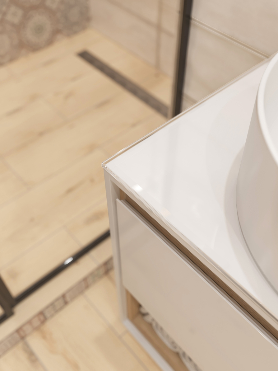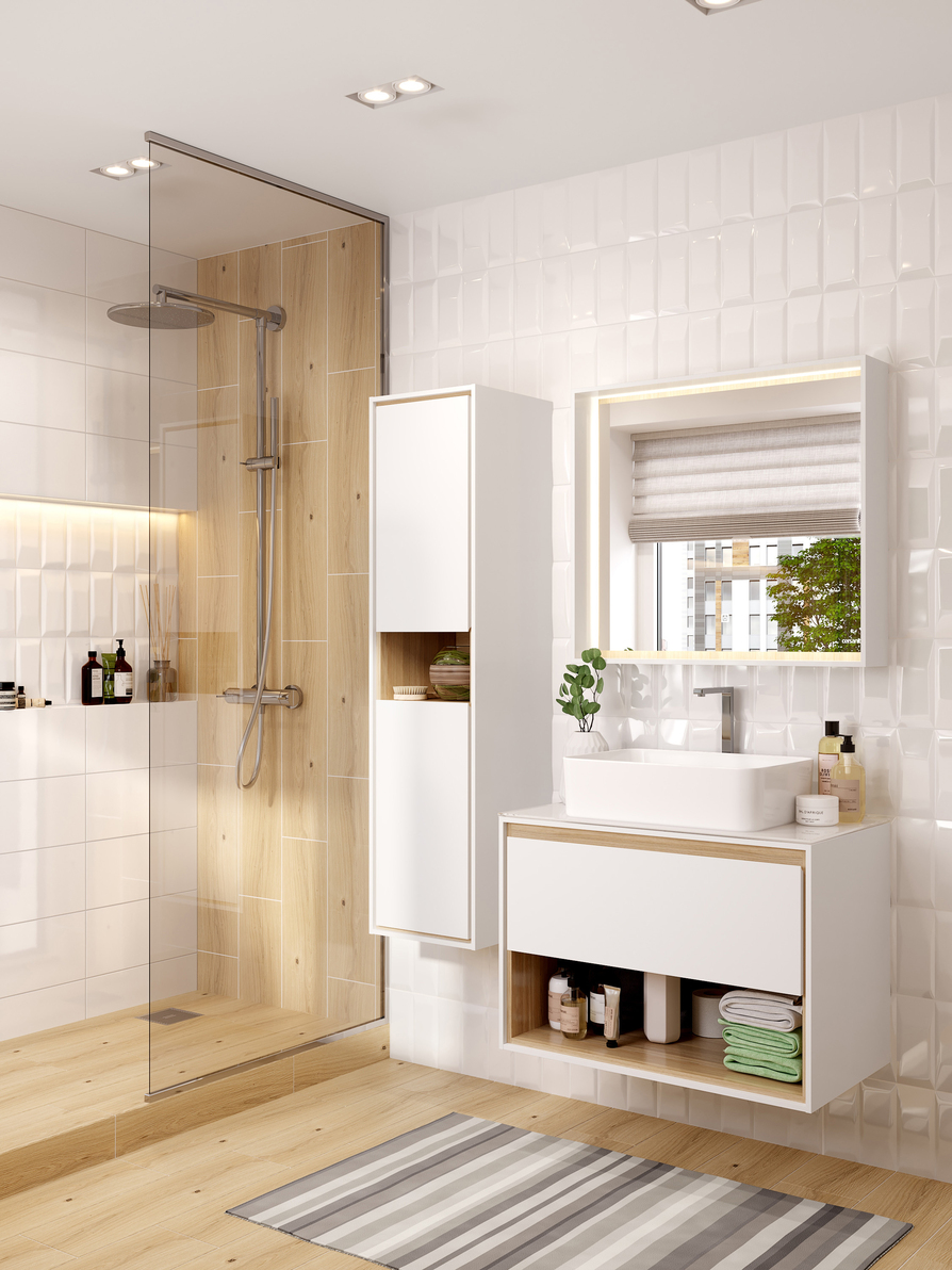LOUNA – это коллекция, отвечающая последним тенденциям рынка: сочетание чистоты белого цвета и натурального дерева. Основной отличительной особенностью коллекции является её дизайн – сочетание белого с деревом, фрезерованная ручка, выдвижной ящик и удобная открытая полка для хранения. Пенал оборудован стеклянными полками и открытой нишей. Зеркала в коробе ЛДСП оборудованы сенсорной подсветкой. К тумбе рекомендуем накладные раковины и высокие смесители коллекций CERSANIT.
