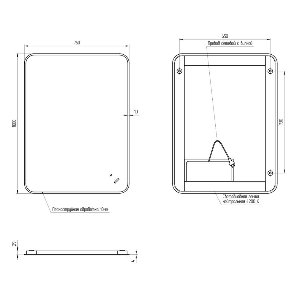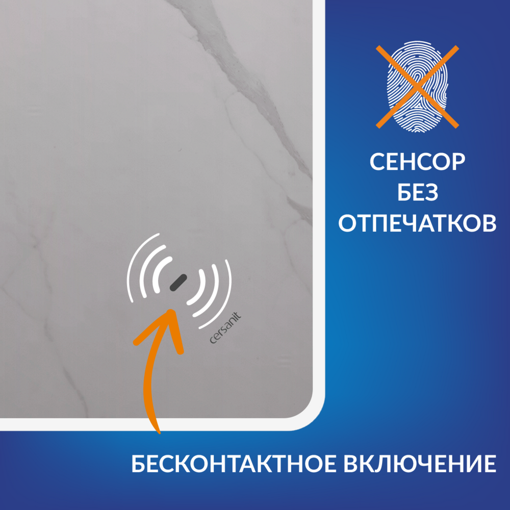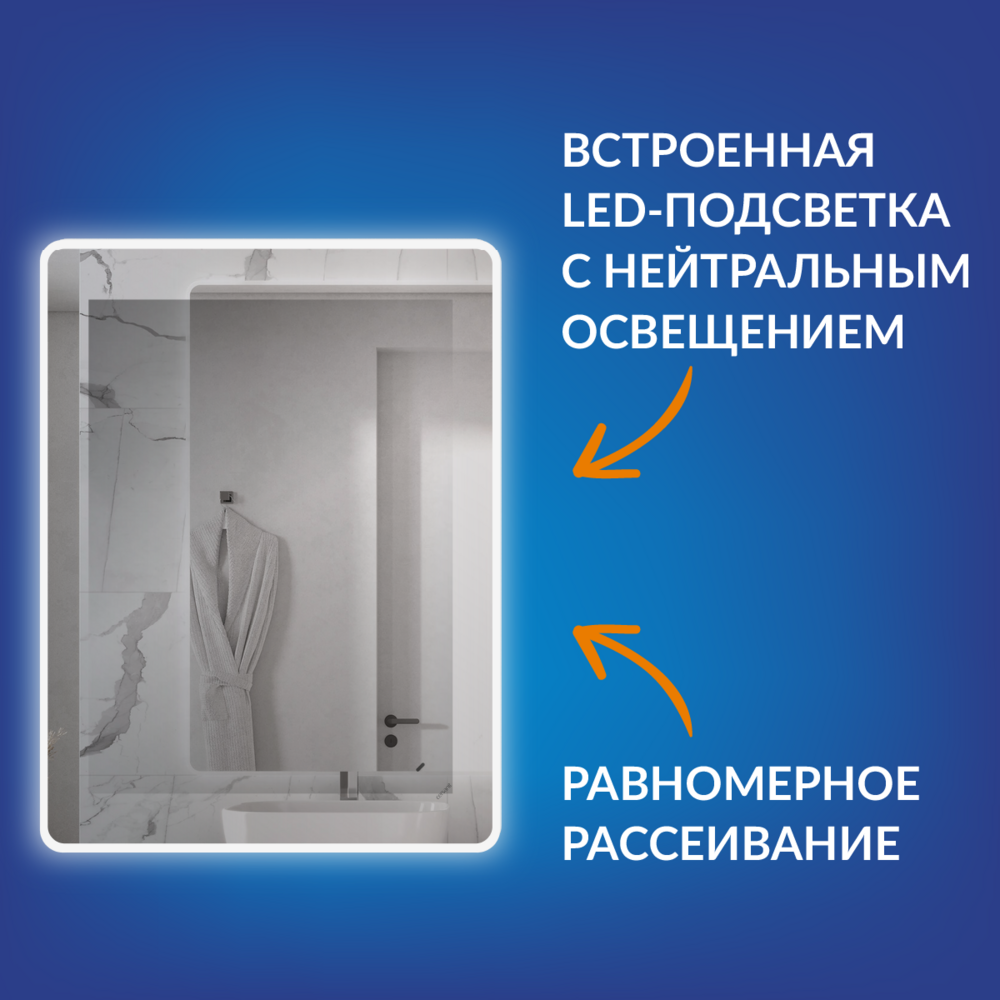 С помощью зеркал в трёх размерах — 60х80, 75х100, 80х120 см — можно обустроить помещение любой планировки. А эффектная встроенная светодиодная подсветка, активизирующаяся по взмаху руки, привнесёт в дизайн свежести, изящности и лёгкости.