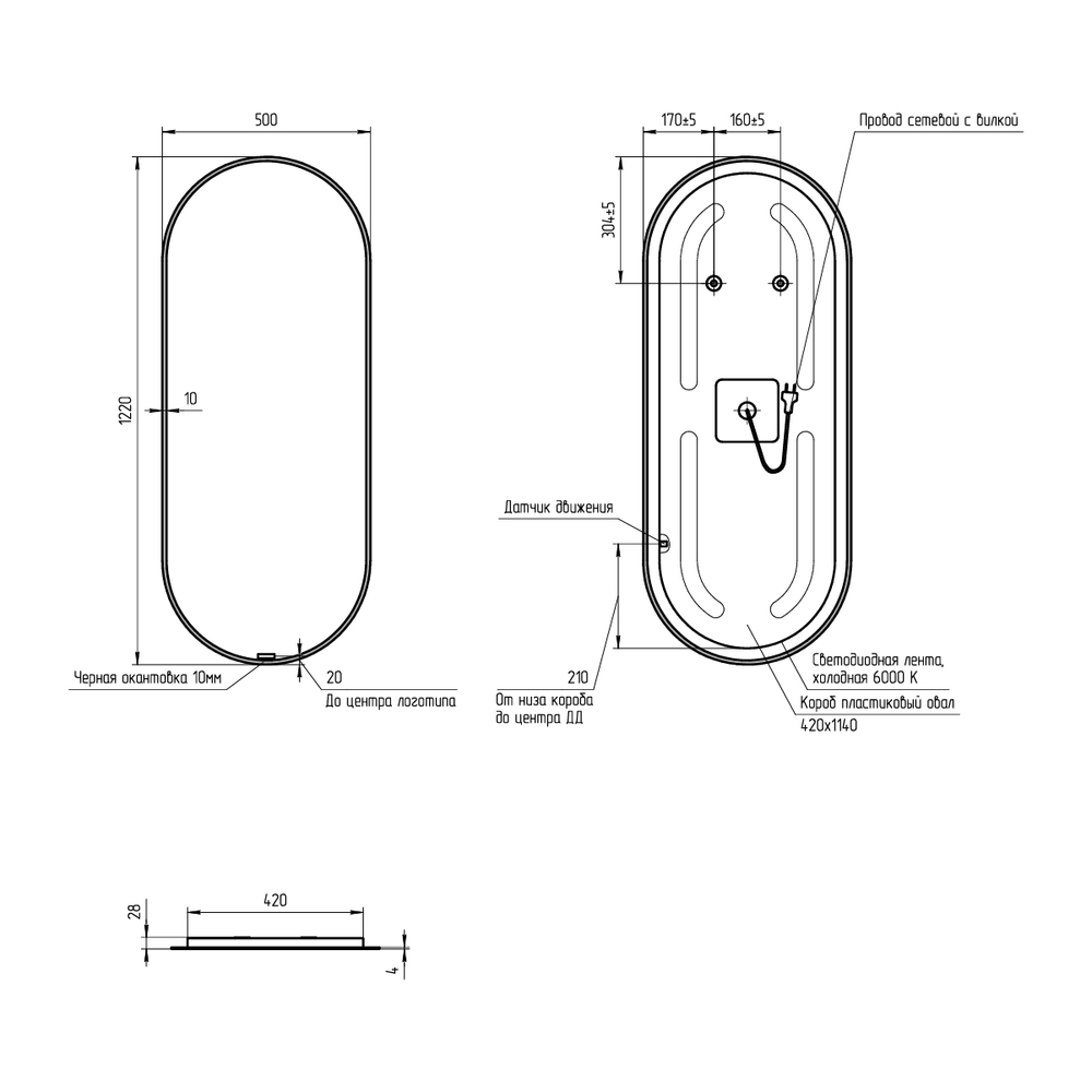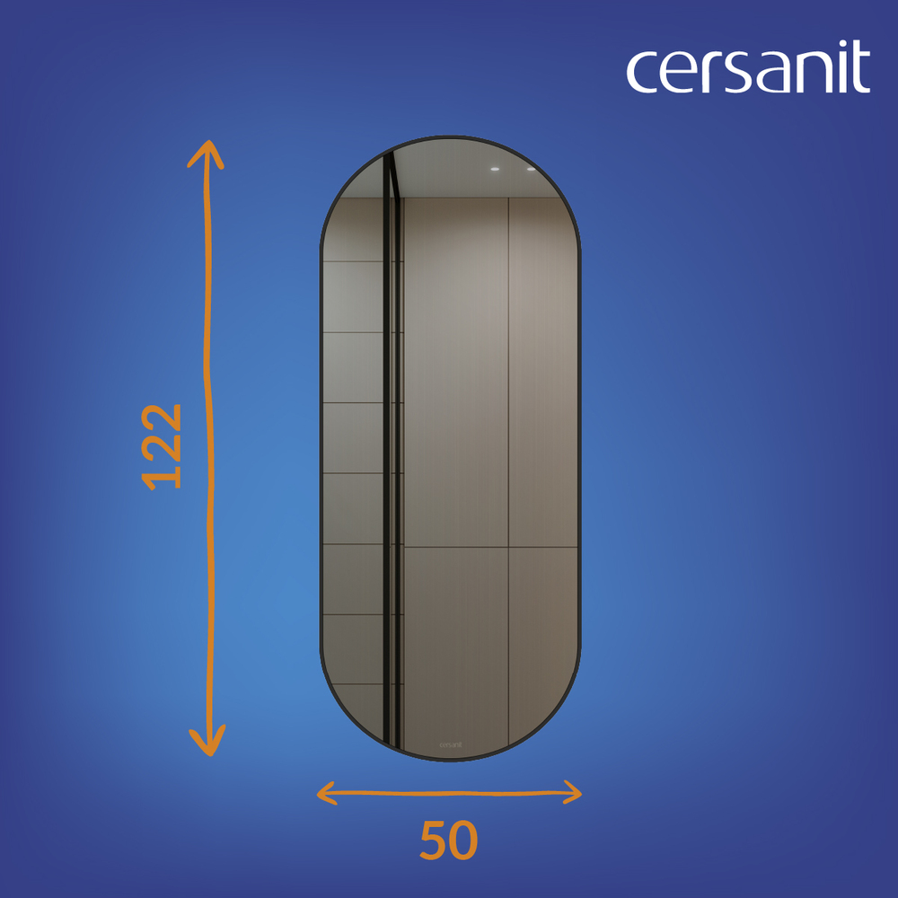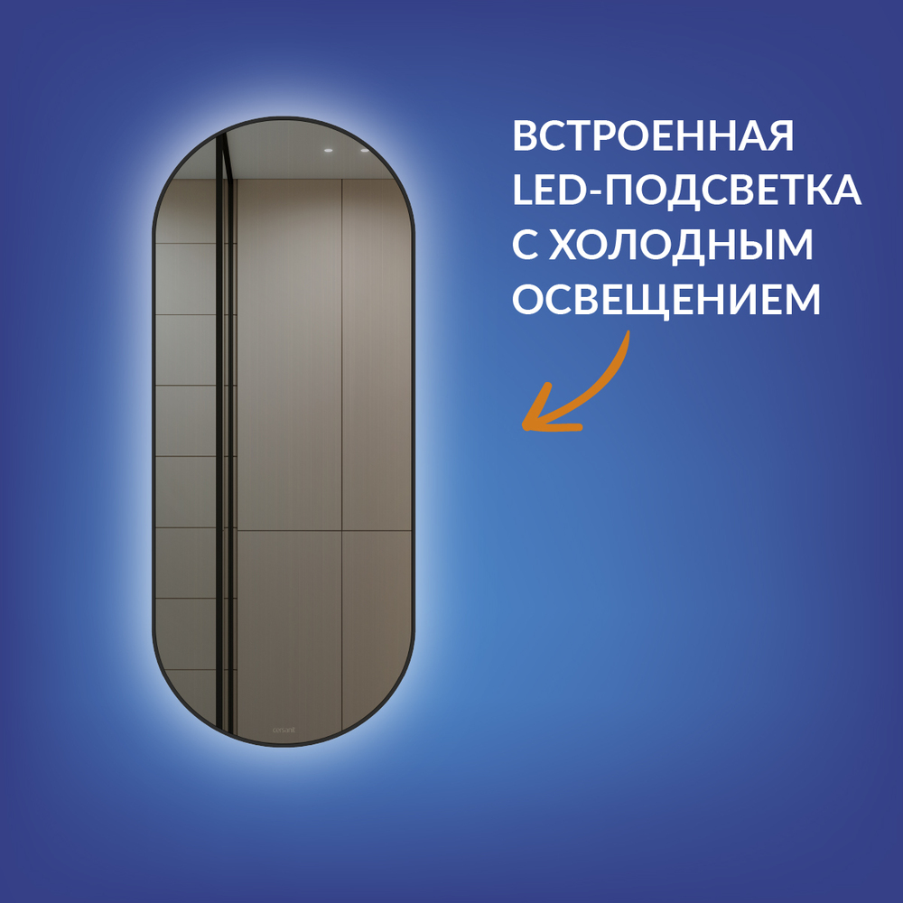 Зеркало ECLIPSE smart 50x122 с подсветкой овальное в черной рамке (чертеж)