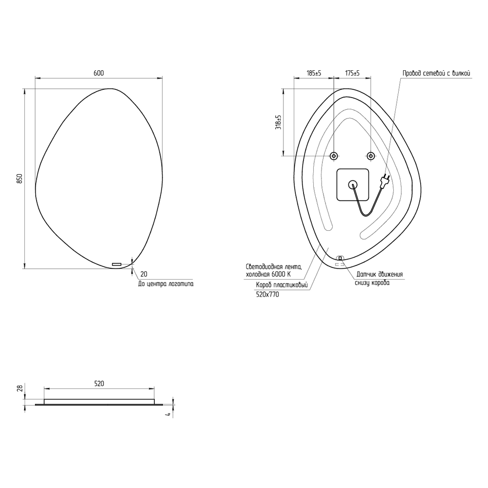 Зеркало ECLIPSE smart 60x85 с подсветкой органик (чертеж)