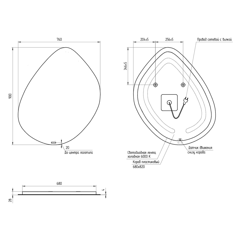зеркало с подсветкой, комплект креплений, инструкция, гарантийный талон