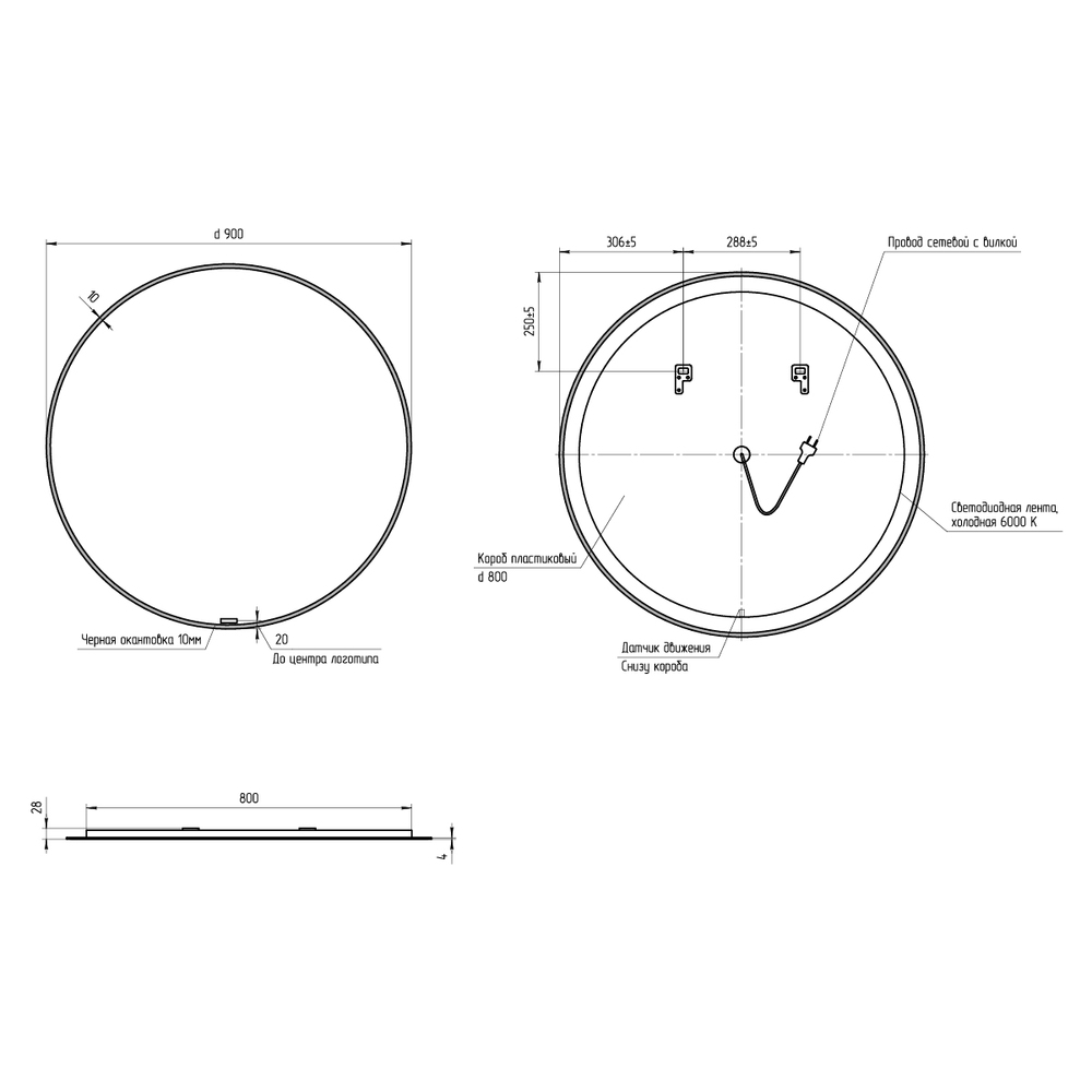 зеркало с подсветкой, комплект креплений, инструкция, гарантийный талон
