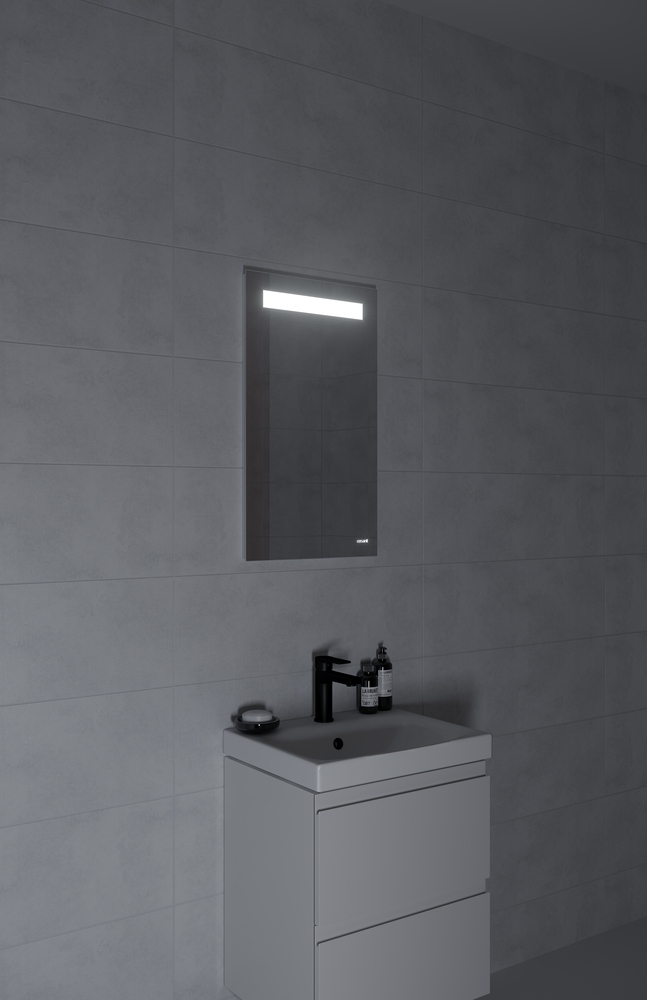 Модель Led 010 Base оснащена встроенной подсветкой, которая включается с помощью механической кнопки. Благодаря ей комфортнее проводить гигиенические процедуры, а также зеркало можно использовать вечером как дополнительный источник мягкого света.
