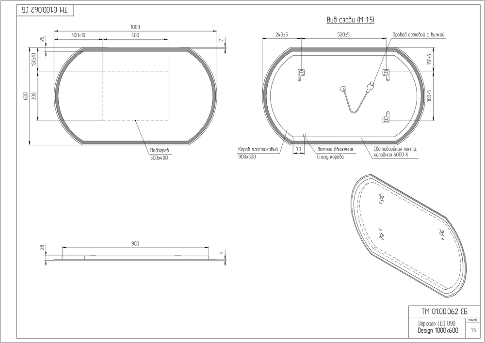 зеркало с подсветкой, комплект креплений, инструкция, гарантийный талон