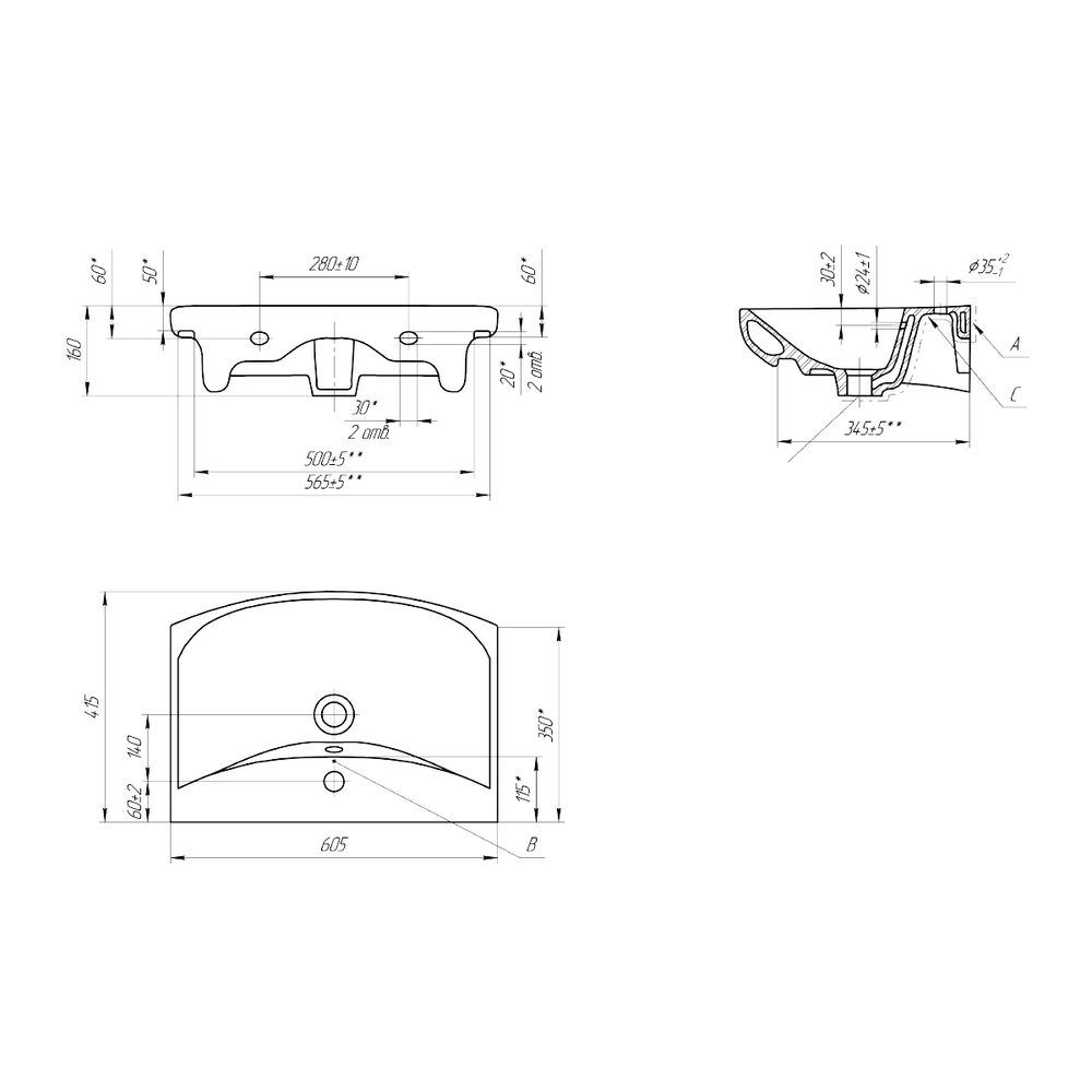 раковина, кольцо перелива, монтажный комплект, инструкция/гарантийный талон