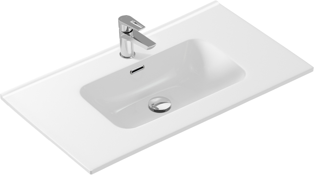Прямоугольная мебельная раковина ESTETICA с тонким бортом и отверстием под смеситель. Ширина раковины 90 см.
