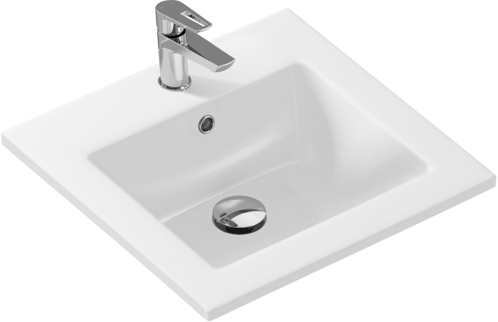 Квадратная врезная в столешницу раковина GEOMETRY с отверстием под смеситель. Ширина раковины 40 см.