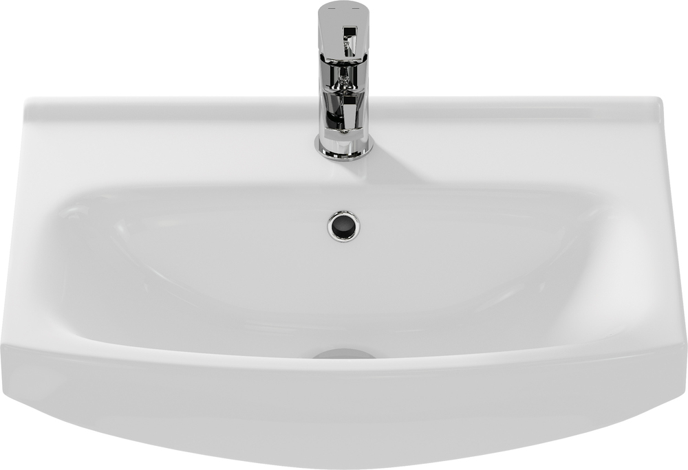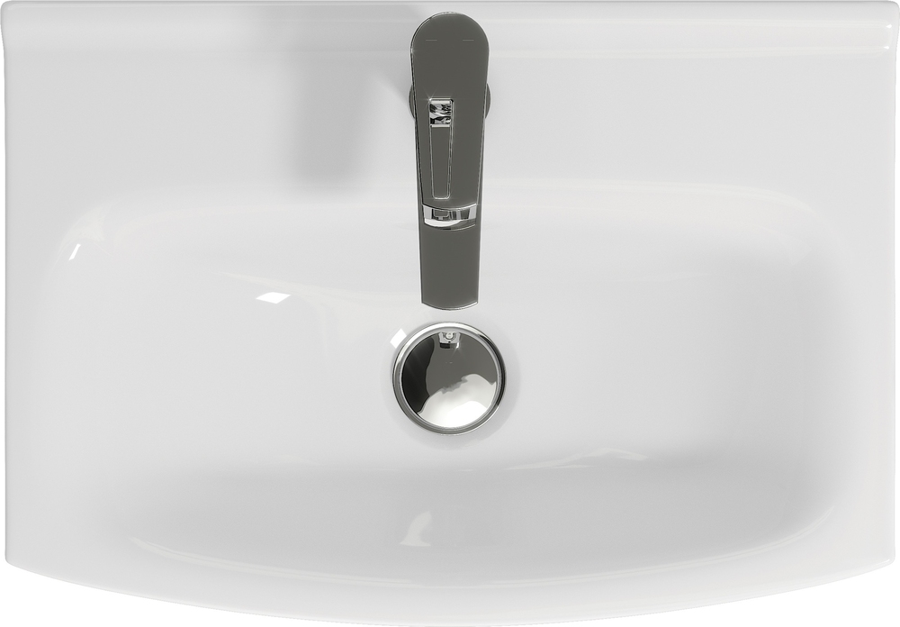 Прямоугольная мебельная раковина CERSANIA, размером 55 см. Имеет отверстие под смеситель, а также отверстие перелива.