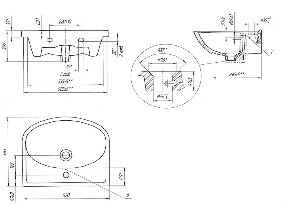 раковина, кольцо перелива, монтажный комплект, инструкция/гарантийный талон