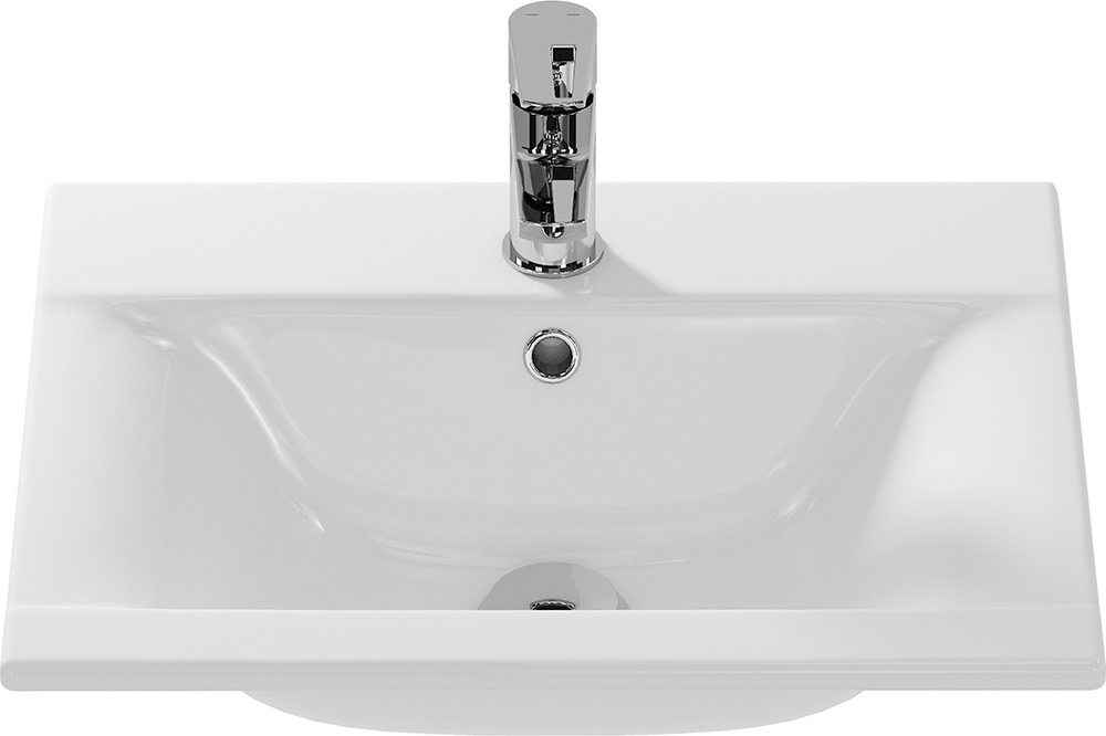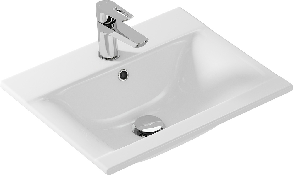 Тонкая раковина Ontario с отверстием под смеситель, размером 50 см. Может устанавливаться на тумбу и на столешницу.