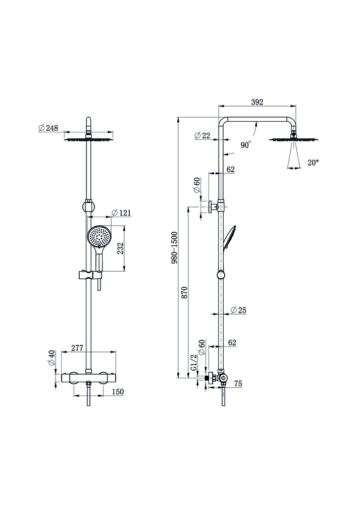 Душевая система BRASKO BLACK A64527 (чертеж)