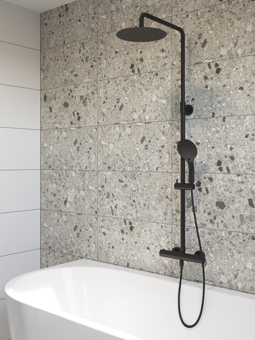 Чёрное матовое покрытие душевой системы выполнено методом электрофореза, благодаря чему не боится влаги. Матовая поверхность не деформируется и не теряет эстетических качеств под воздействием воды и солей. Такой смеситель прослужит дольше и сохранит свой первоначальный внешний вид годами. Модный дизайн и черное матовое покрытие придают душевой системе актуальный внешний вид, а удобное управление придется по душе всем членам семьи.