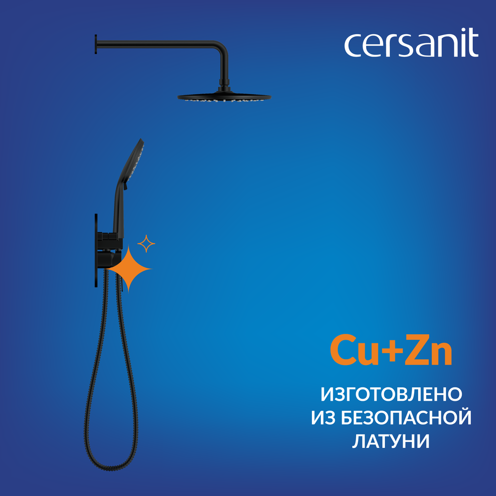 В составе гарнитура надёжный и долговечный латунный смеситель, который защищен изнутри от перепадов давления благодаря высокому содержанию меди в составе. Внутри керамический картридж, рассчитанный на 500 000 циклов использования и точно смешивающий воду.