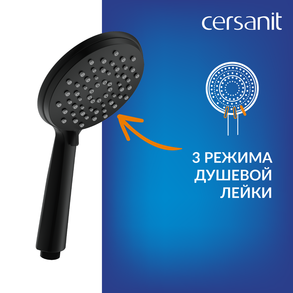 Тропический душ подает воду рассеянными мягкими каплями, что расслабляет и успокаивает после напряженного рабочего дня. Угол наклона можно изменить, настроив поток в нужном направлении. Душевая лейка выполнена в удобном корпусе и обладает 3 режимами подачи воды. Благодаря технологии Cersanit Easy Clean силиконовые форсунки лейки легко очищаются от известкового налёта простым нажатием пальцев.
