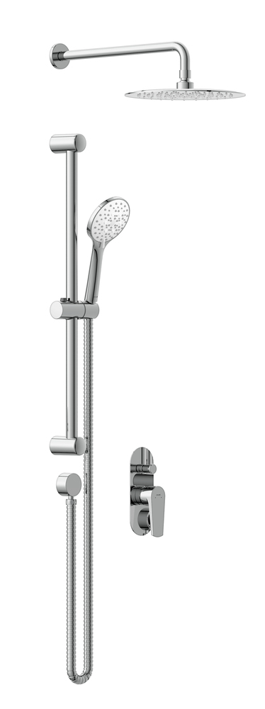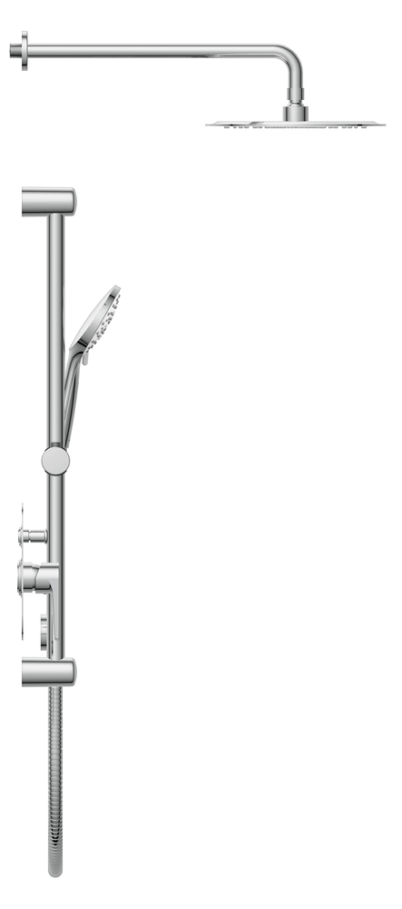Встраиваемая душевая система MODUO подойдёт для оформления минималистичных душевых зон. Все коммуникации останутся за стеной, а на виду — лишь функциональные части системы: лейка тропического душа диаметром 25 см с регулируемым углом наклона, обычная лейка с 5 режимами подачи воды и удобным переключением кнопкой, а также смеситель с особенно плавным ходом ручки для точной регулировки температуры и напора воды. Штанга оснащена регулируемым держателем для лейки, и её можно установить в любом удобном месте.