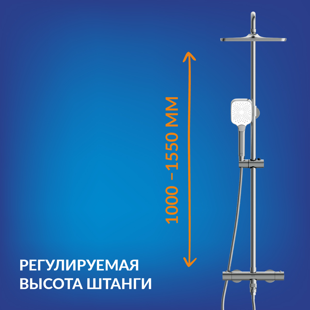 Душевая система Vivo с термостатическим смесителем порадует своей функциональностью и эстетикой минимализма. Чёткие линии, отсутствие лишних деталей и сияющее никель-хромовое покрытие добавят стиля любому современному интерьеру.