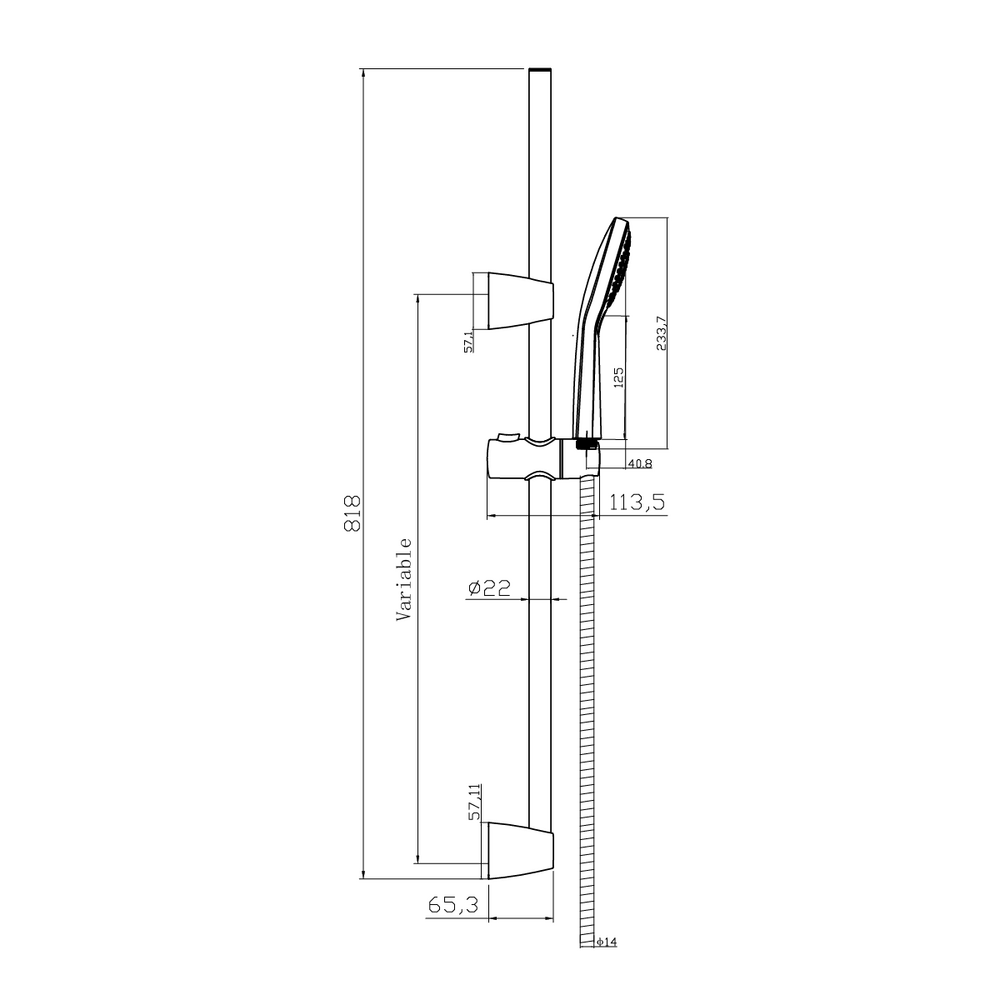 Душевой гарнитур NENO (стойка) 3 режима шланг 200 PVC черный (чертеж)