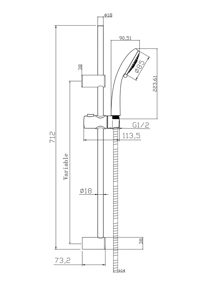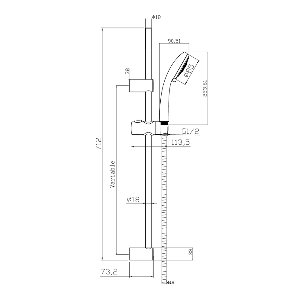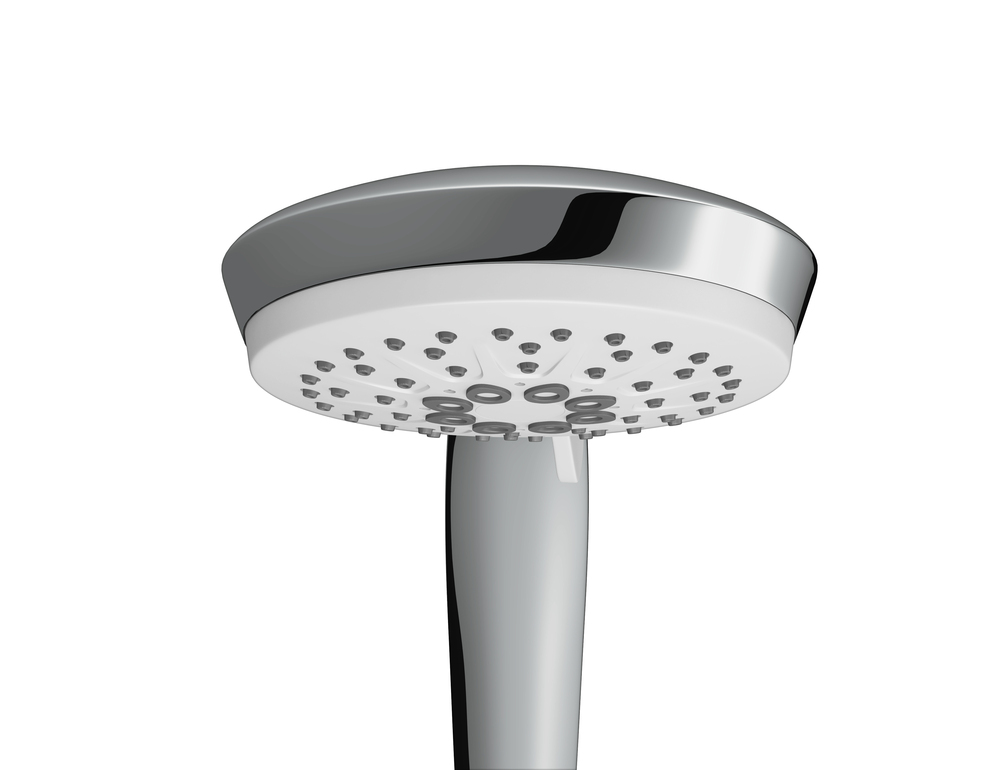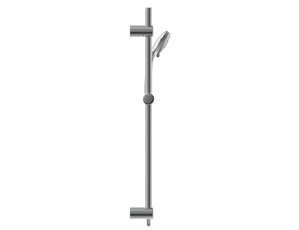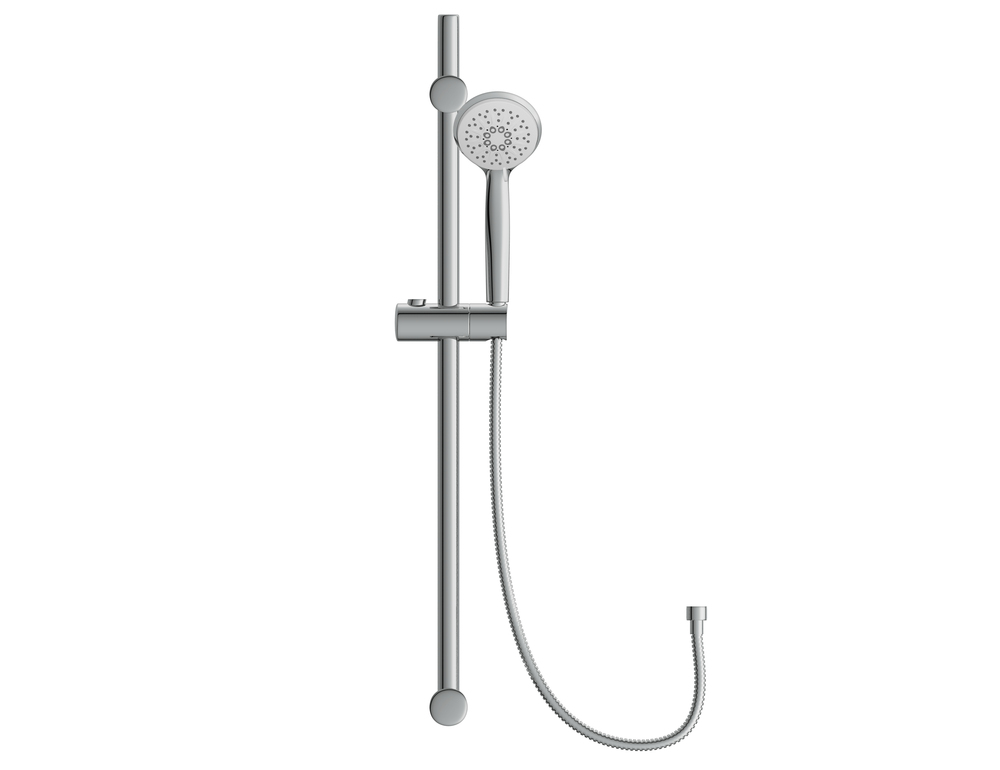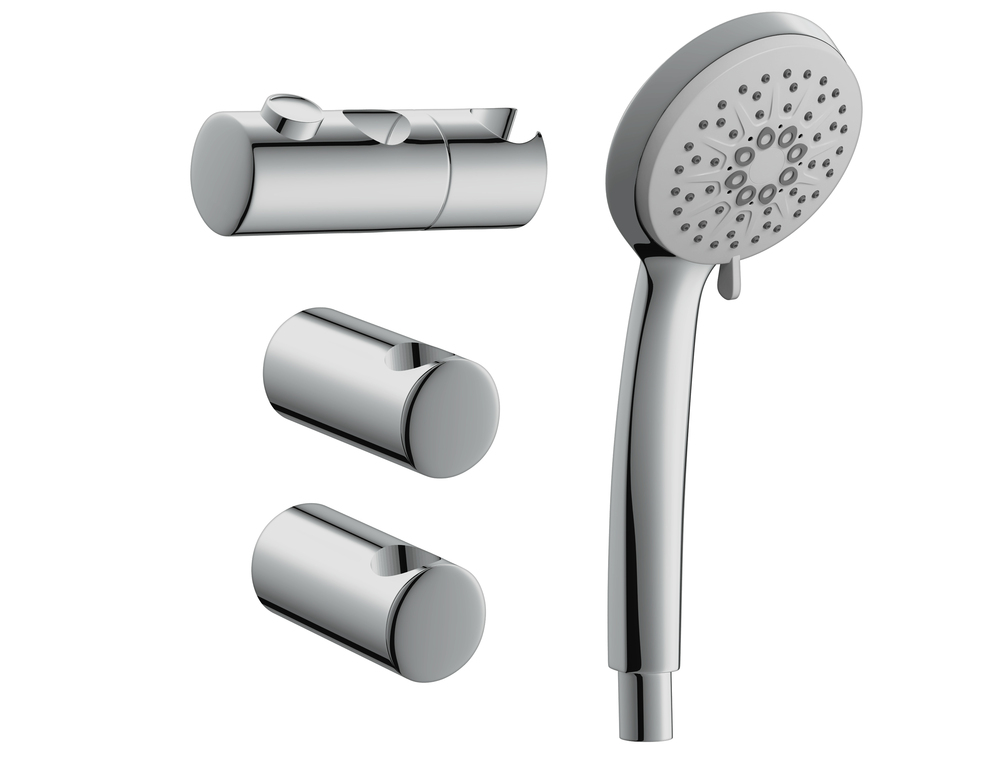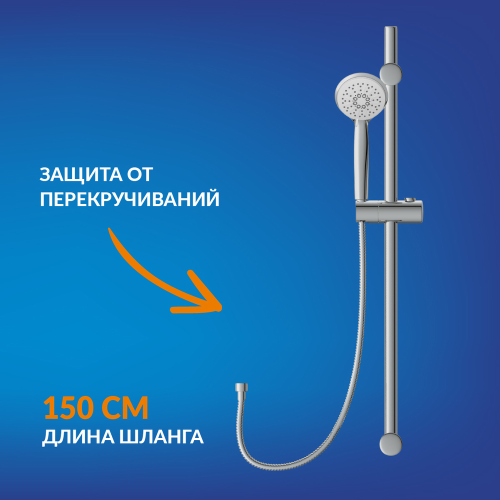 Гарнитур состоит из лейки с 3 режимами подачи воды и стойки с передвижным держателем лейки. С его помощью душ удобно фиксируется на нужной высоте.