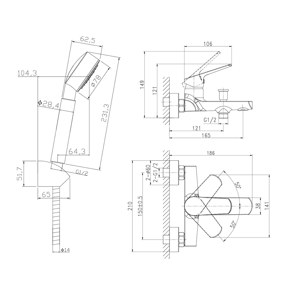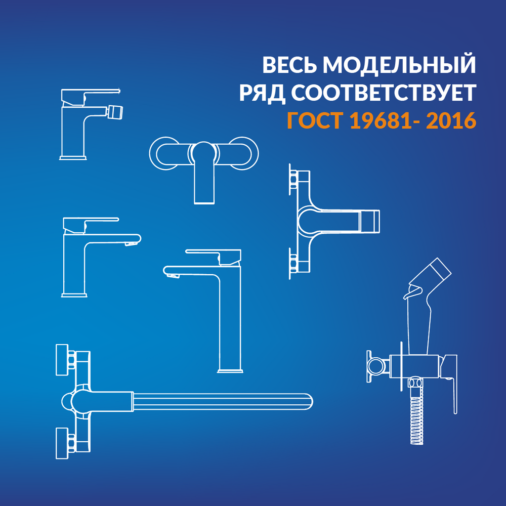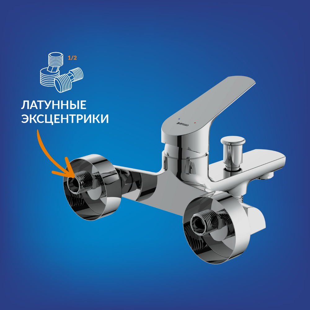 смеситель для душа, душевой набор (душевая лейка, держатель лейки, душевой шланг); S-образные эксцентрики 65 гр., крепеж.