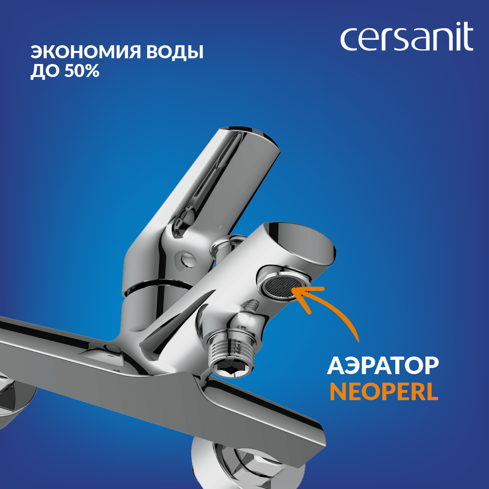 Внутри смесителя Flavis с цельнолитым латунным корпусом установлен керамический картридж, рассчитанный на 500 тыс. циклов открывания и закрывания. Он обеспечивает мягкий и плавный ход ручки, а также точное смешивание воды даже при плохом напоре. Благодаря высокому содержанию меди в сплаве (более 57%) смеситель не ржавеет изнутри, не боится перепадов воды и защищён от трещин. Аэратор Neoperl позволяет экономить до 50% воды и формирует струю в ровный мягкий поток без брызг. Первозданный блеск обеспечивает никель-хромовое покрытие Cersanit Super Shine, прошедшее тестирование в течение 200 часов в нейтрально-солевой среде. На смесители Cersanit действует одна из самых длительных гарантий на российском рынке — 12 лет.