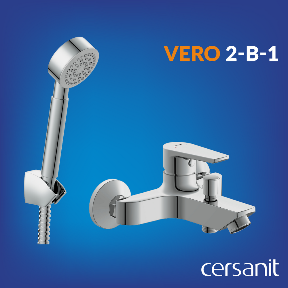 Миниатюрный смеситель для ванны Vero дополнен душевым гарнитуром Cari в комплекте 2 в 1. Идеально сочетающуюся по дизайну пару можно использовать в любом современном интерьере, который хочется сделать стильным и функциональным.