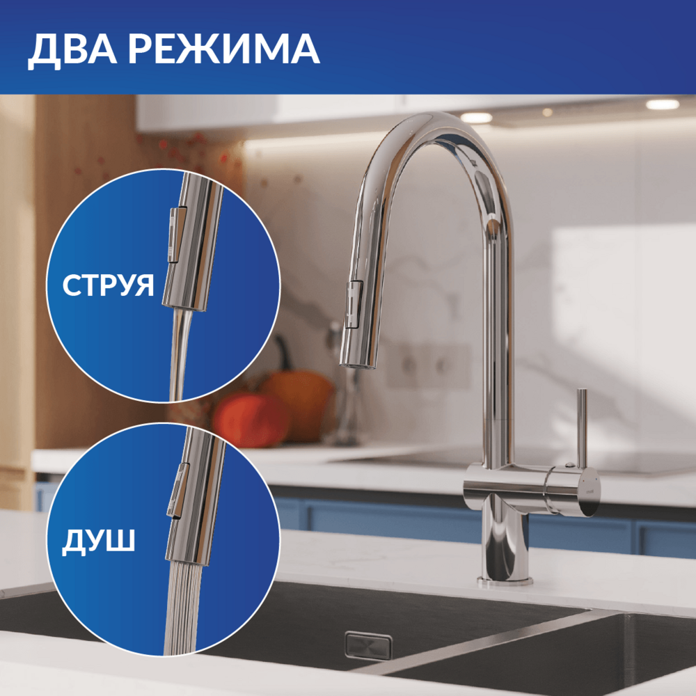 Изящный дизайн смесителей Brasko с округлыми линиями привнесет в интерьер размеренности и гармонии. Модель с выдвижной лейкой с двумя режимами функциональна и практична.