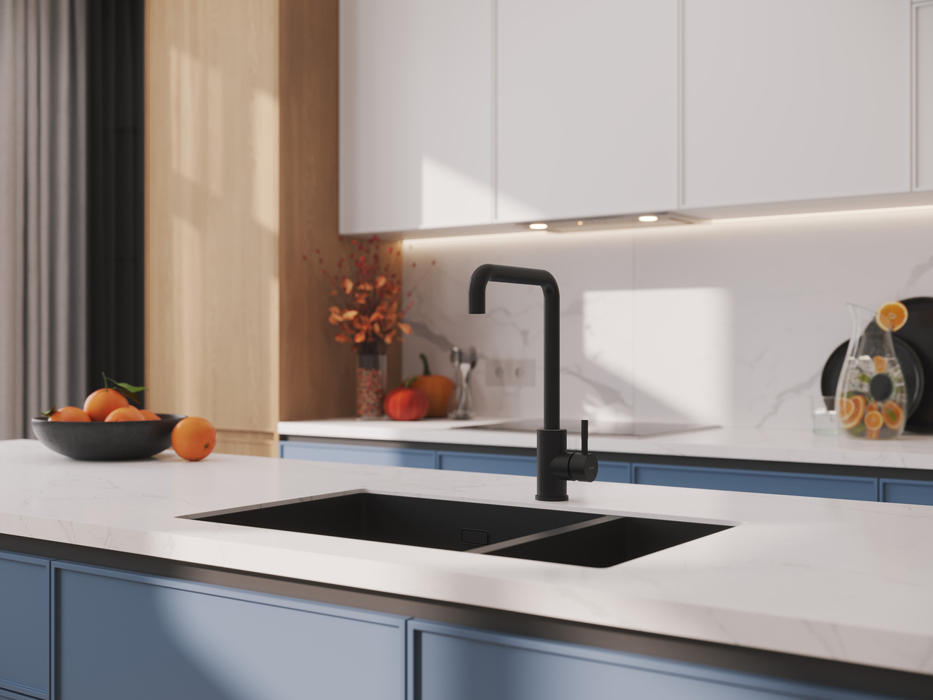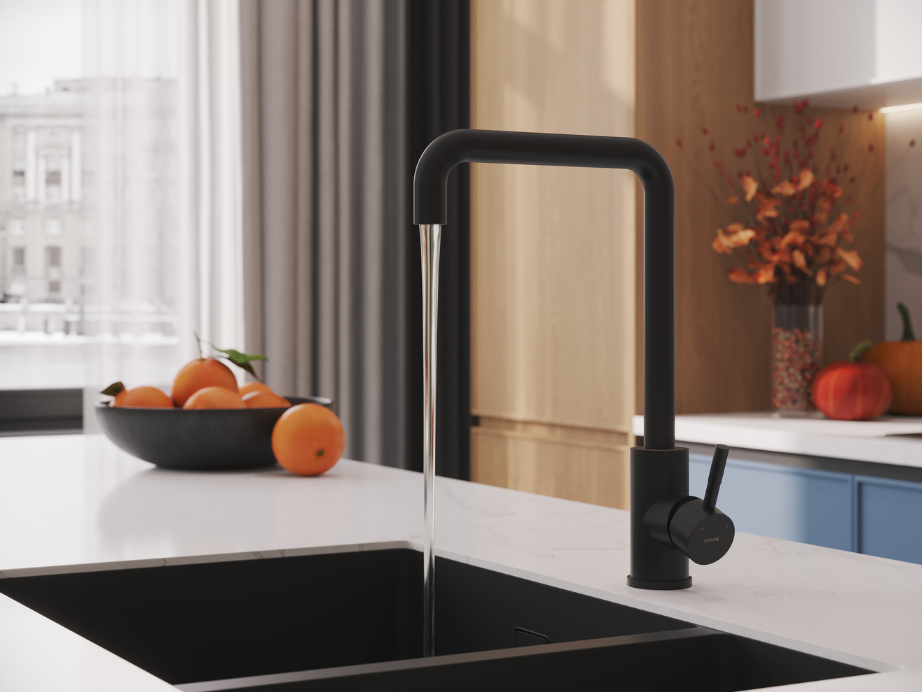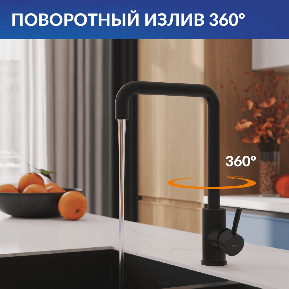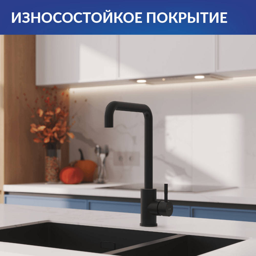Трендовая прямоугольная форма со скруглёнными углами вдохновила дизайнеров на создание смесителя Como. Его чёткая и понятная форма подойдет для создания минималистичного функционального интерьера на кухне. Стильное контрастное оборудование представлено в актуальном чёрном цвете. Матовое покрытие смесителя, нанесённое методом электрофореза, подчёркивает строгость дизайна. Эта поверхность не деформируется и не теряет эстетических качеств под воздействием воды и солей. Такой смеситель более долговечен и надолго сохранит свой первоначальный внешний вид.