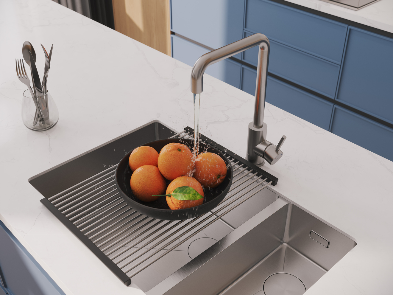 Корпус смесителя создан нержавеющей стали — надежного и долговечного материала. Сплав не выделяет вредных веществ в воду, что делает смеситель безопасным для здоровья, особенно если он используется для питьевой воды или приготовления пищи.