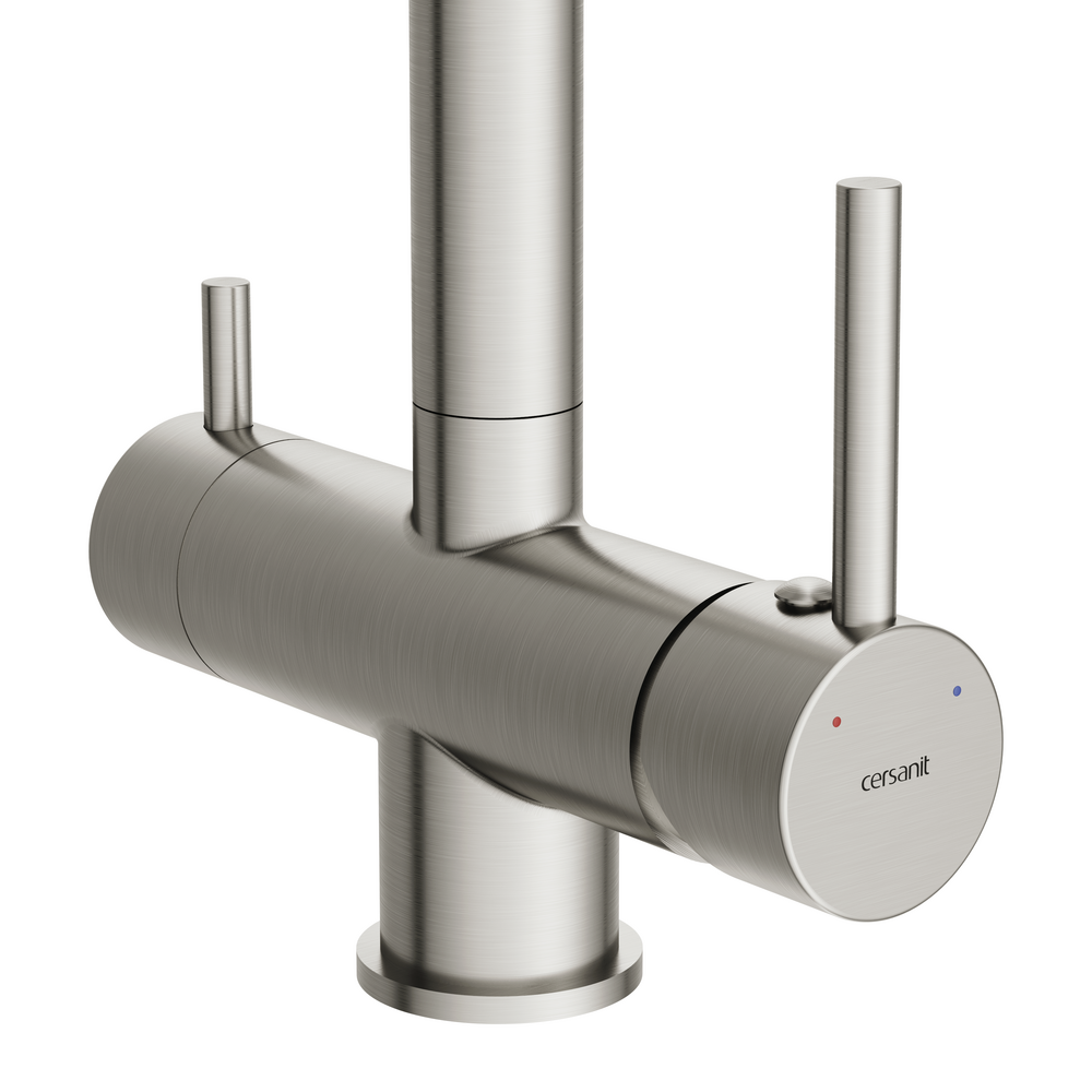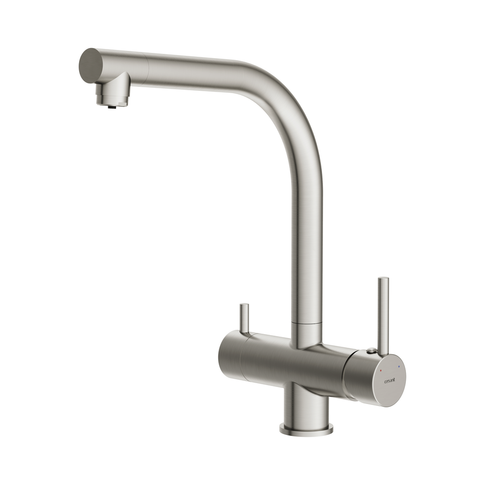 Смеситель Crea с выверенным лаконичным дизайном оснащен инновационной технологией двухканальной подачи воды. Проточная и фильтрованная вода поступает из одного излива по двум разным каналам.