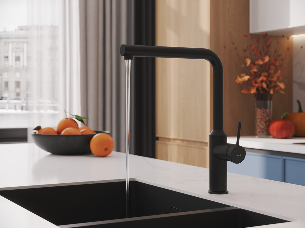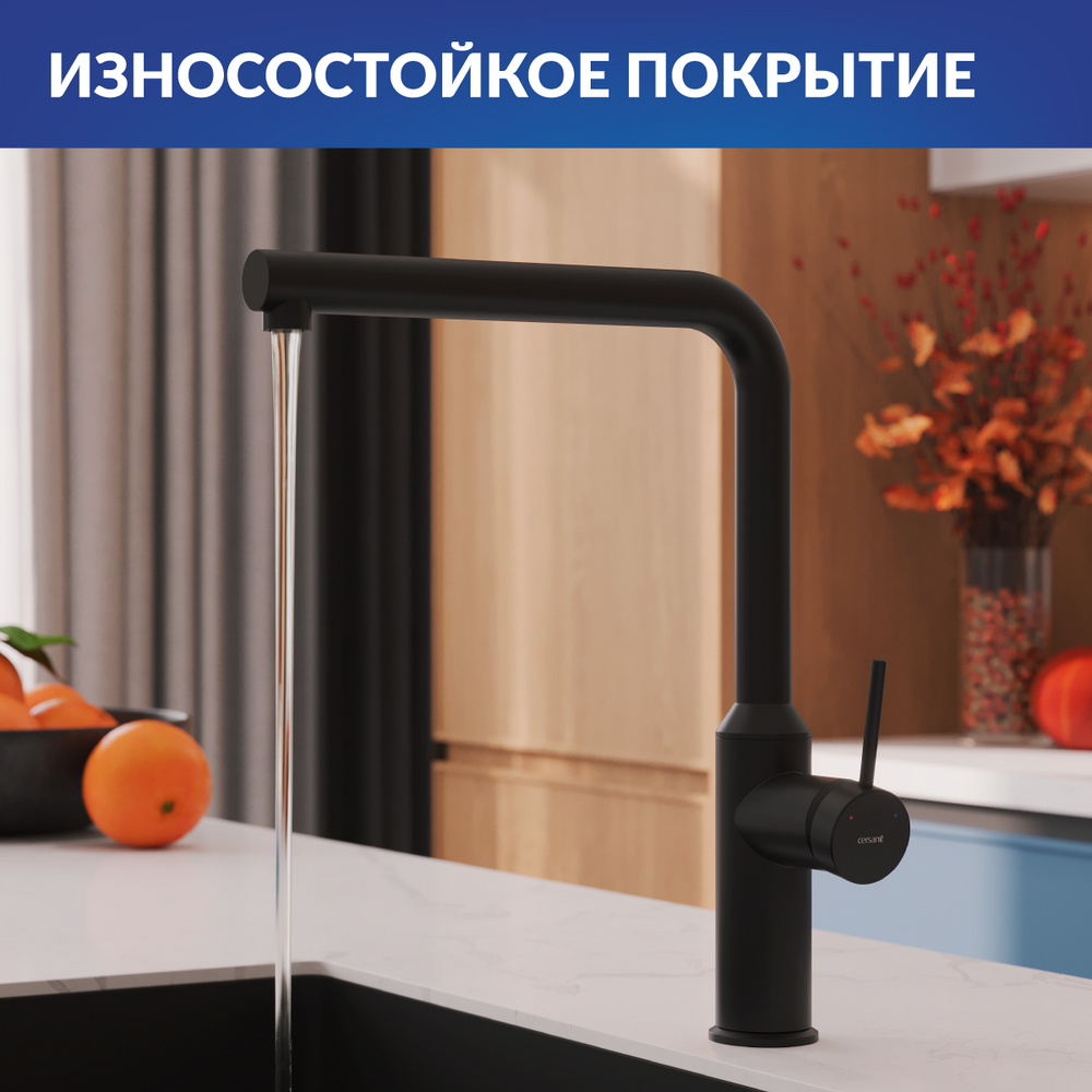 Смеситель Flavis в футуристичном дизайне станет находкой для современных интерьеров. Его смелые геометричные черты помогут расставить акценты и подчеркнут креативность любой творческой задумки. Стильное контрастное оборудование представлено в актуальном чёрном цвете. Матовое покрытие смесителя, нанесённое методом электрофореза, подчёркивает строгость дизайна. Эта поверхность не деформируется и не теряет эстетических качеств под воздействием воды и солей. Такой смеситель более долговечен и надолго сохранит свой первоначальный внешний вид.