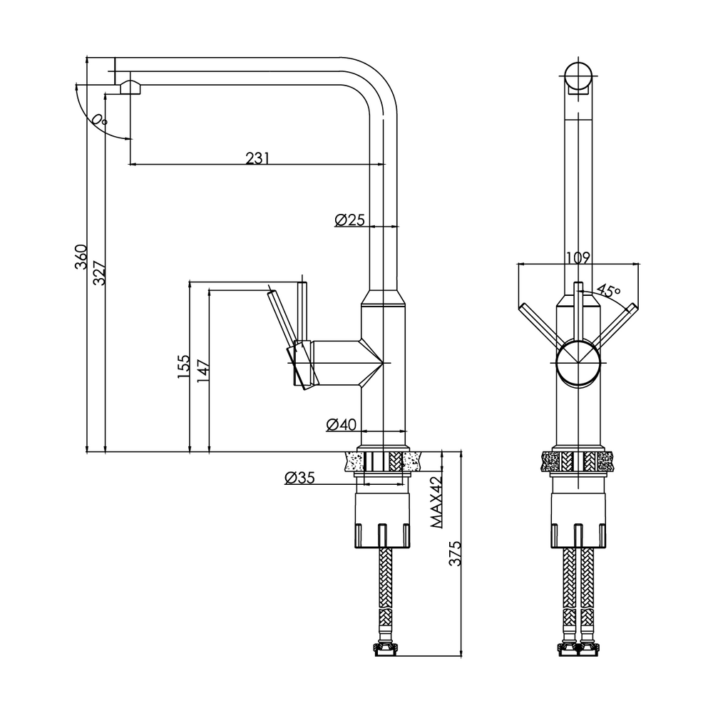 Смеситель для кухни FLAVIS однорычажный черный (чертеж)
