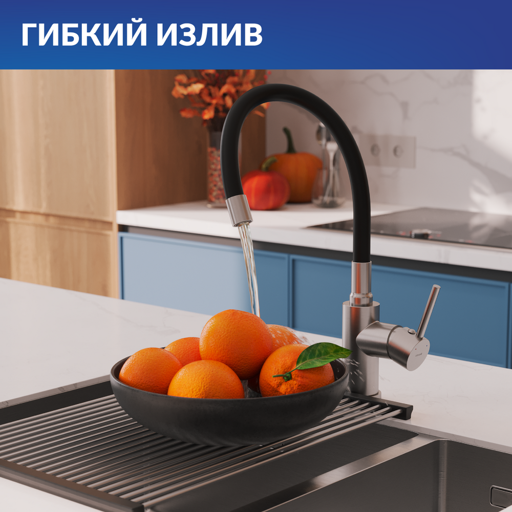 Смеситель для кухни MELAR с гибким изливом сатин