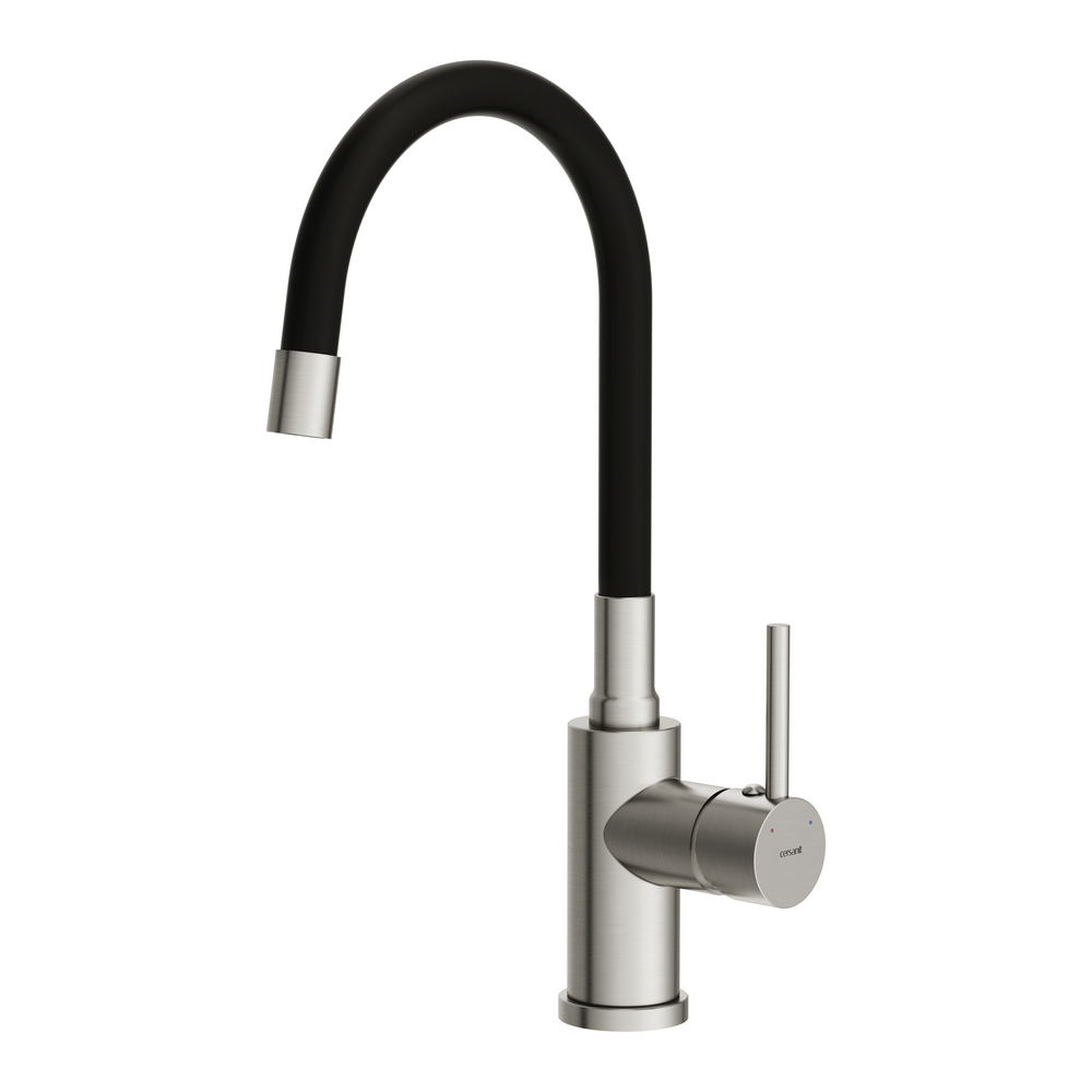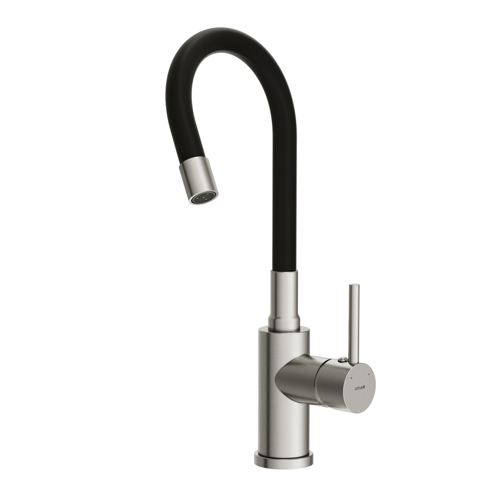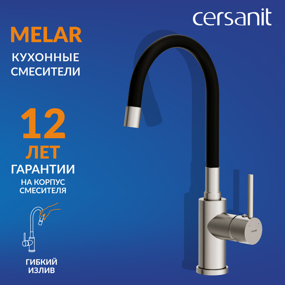Стильный и функциональный смеситель Melar в классическом дизайне станет гармоничной частью современного интерьера. Оборудование с гибким изливом превратит бытовые хлопоты в удовольствие. Оборудование представлено в стильной комбинации двух оттенков: это сатиновый корпус и матовый силиконовый излив черного цвета. За такими смесителями просто ухаживать, для поддержания эстетичного внешнего вида достаточно лишь стирать капли воды после использования.
