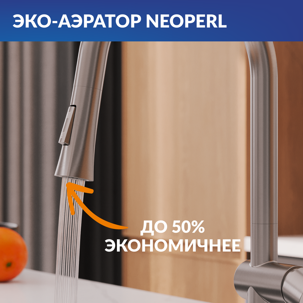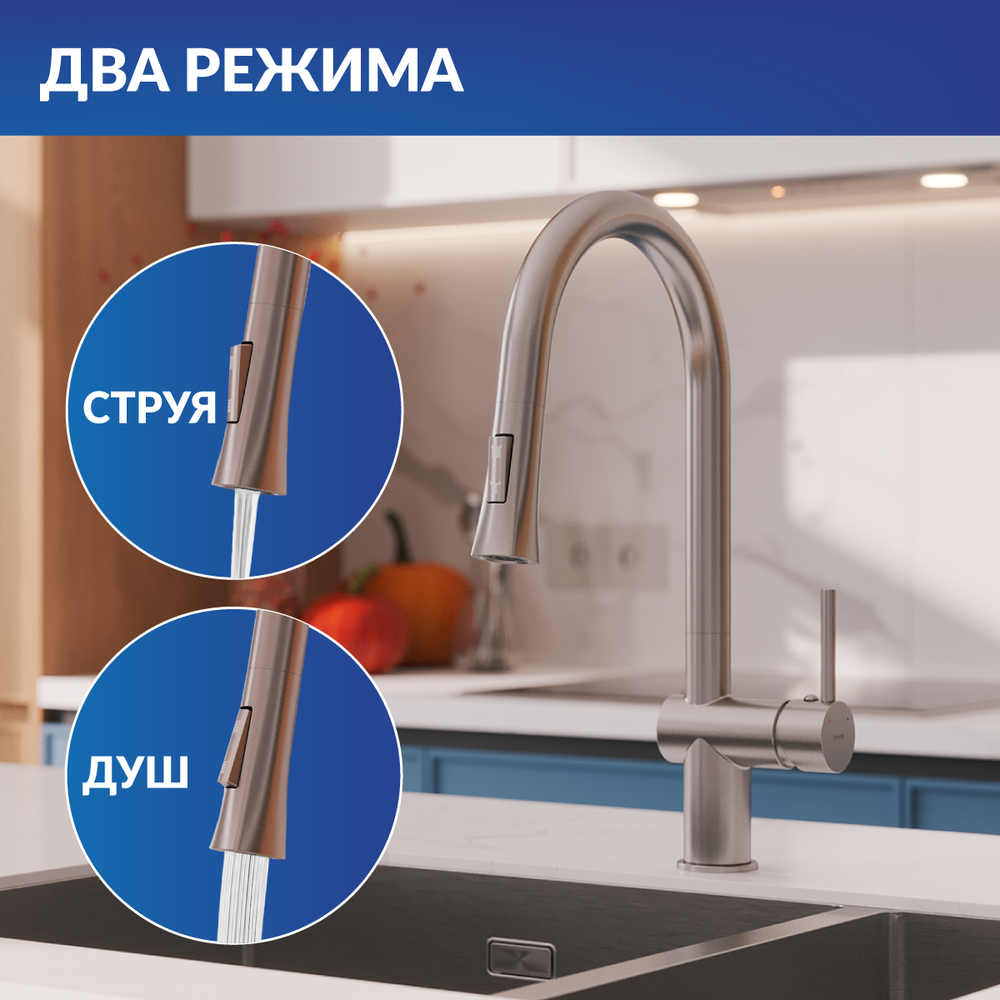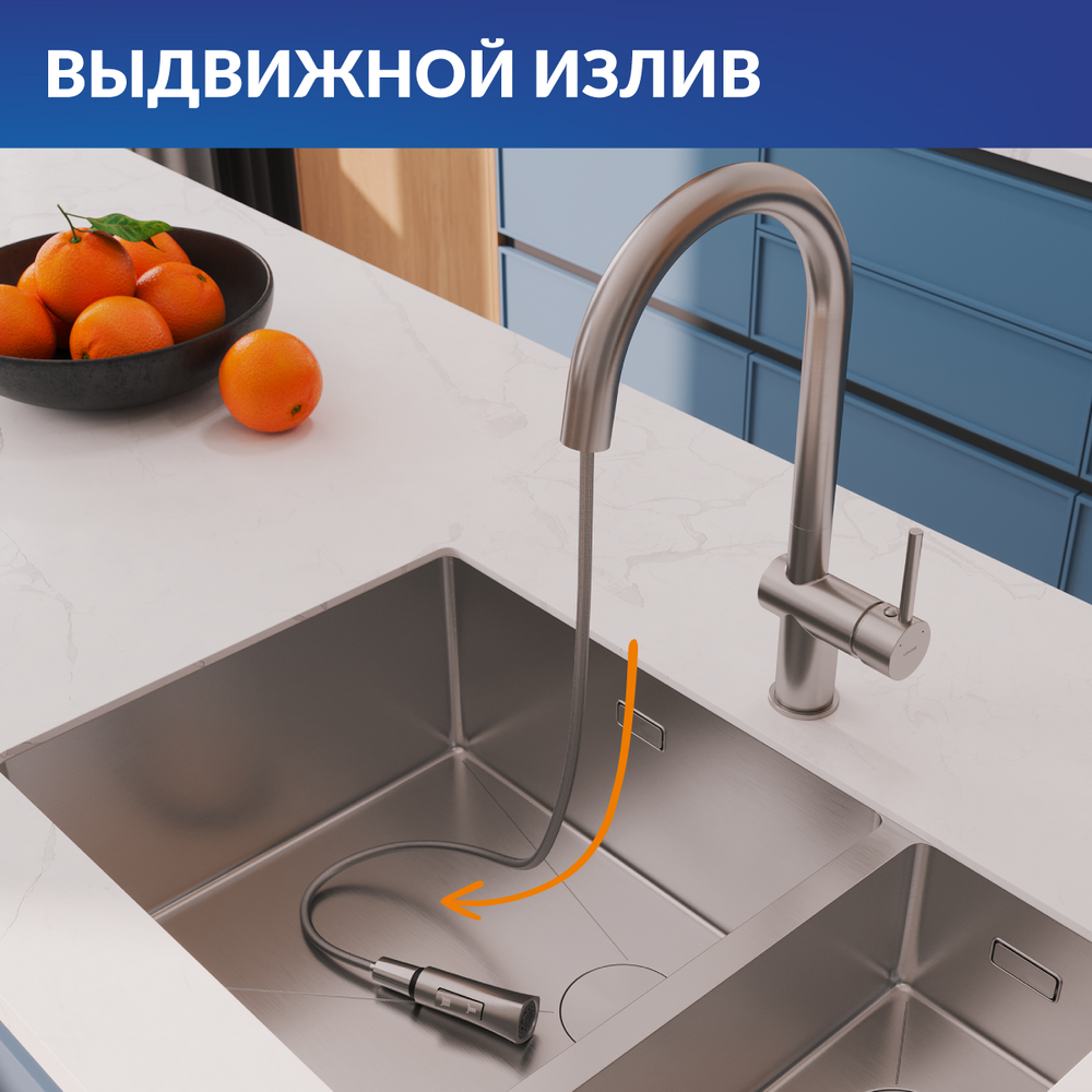 Смеситель для кухни MELAR с выдвижным изливом сатин