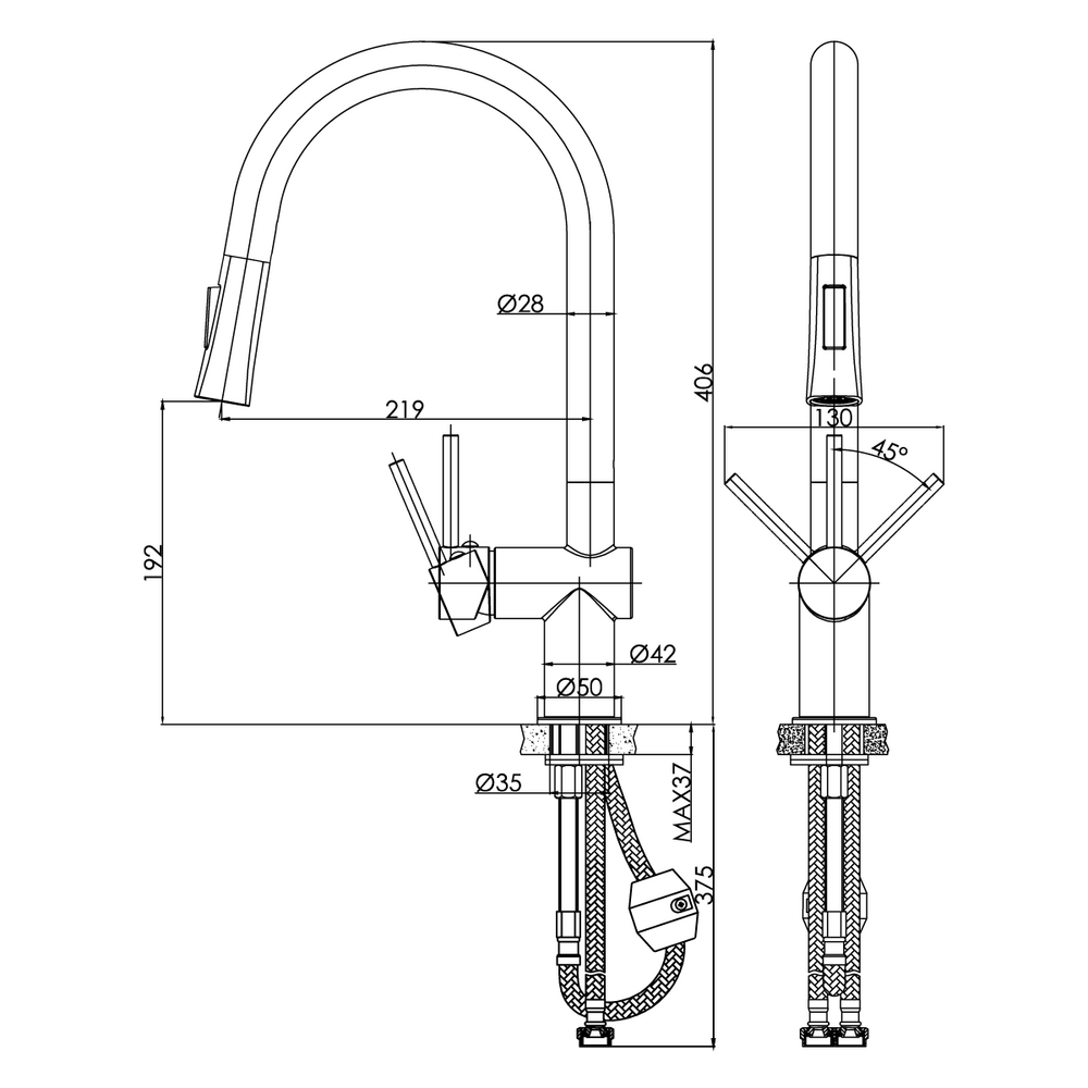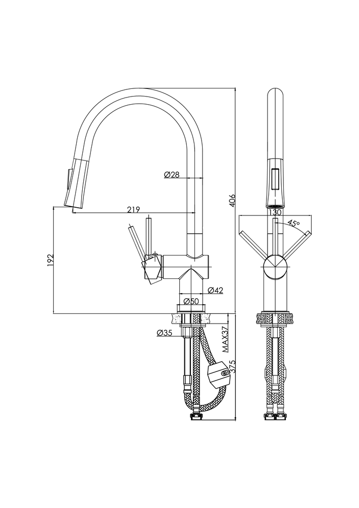 Смеситель для кухни MELAR однорычажный с выдвижным изливом хром (чертеж)