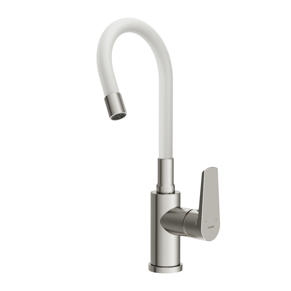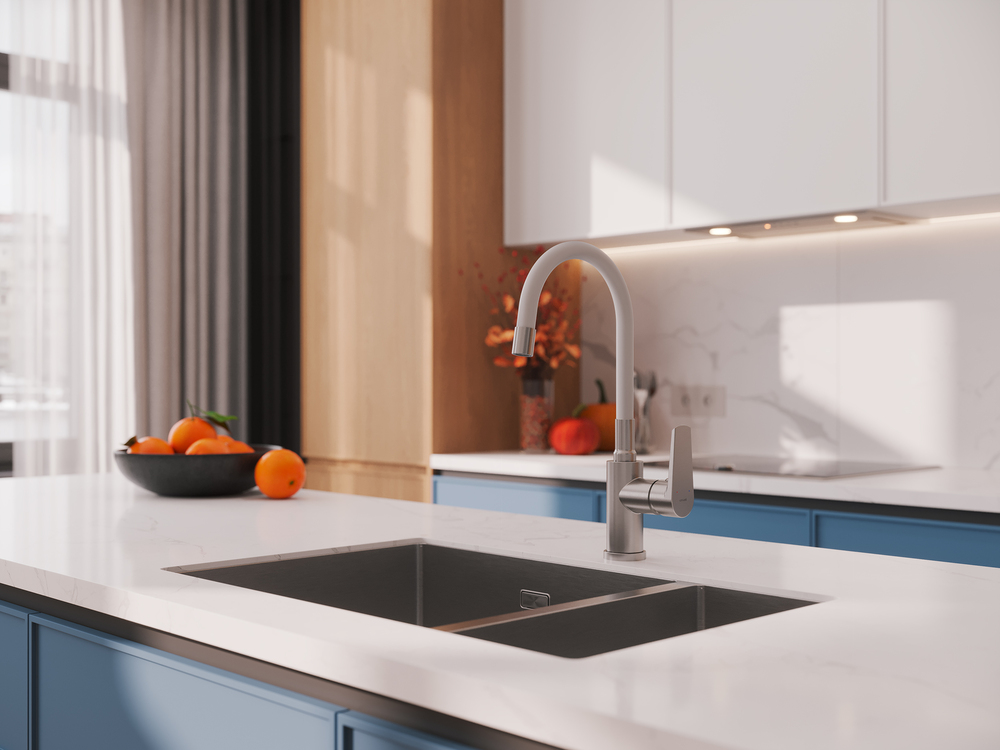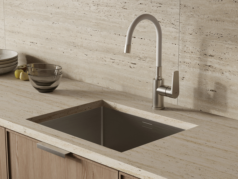 Кухонный смеситель Moduo в трендовом сочетании нескольких цветов с гибким силиконовым изливом добавляет повседневным делам ощутимый комфорт. Оборудование идеально подходит для мытья овощей и фруктов, заполнения больших кастрюль и ухода за раковиной. Термостойкий силиконовый шланг обеспечивает изливу гибкость и долговечность. Даже спустя годы форма смесителя сохранится без деформаций.